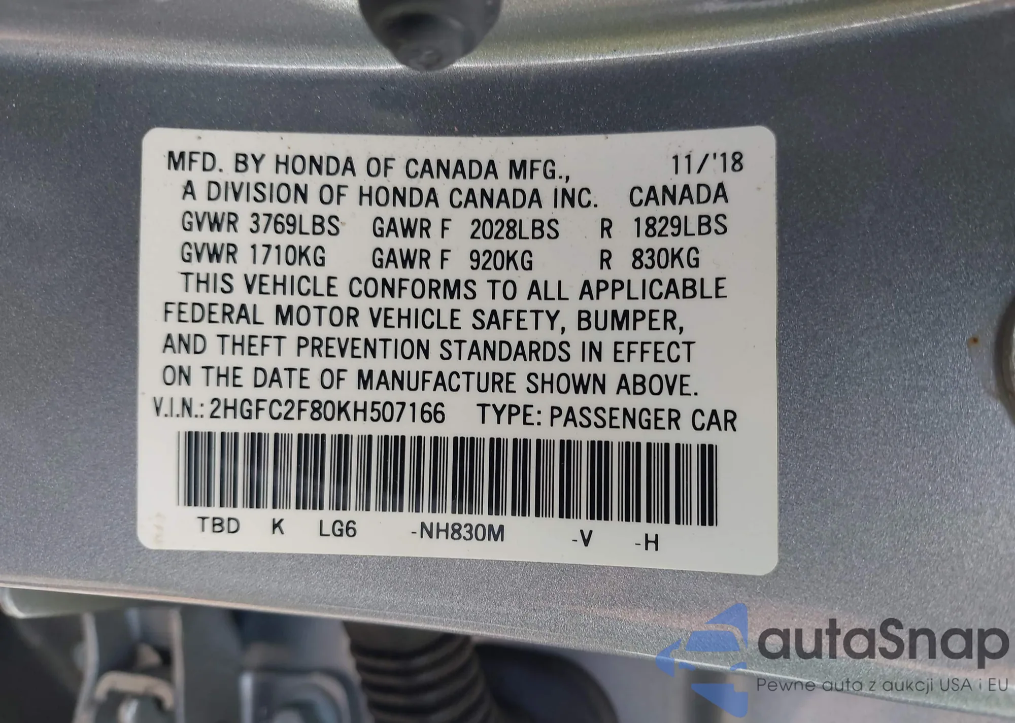 LOT: 42667937 VIN: SHSRD78844U202306