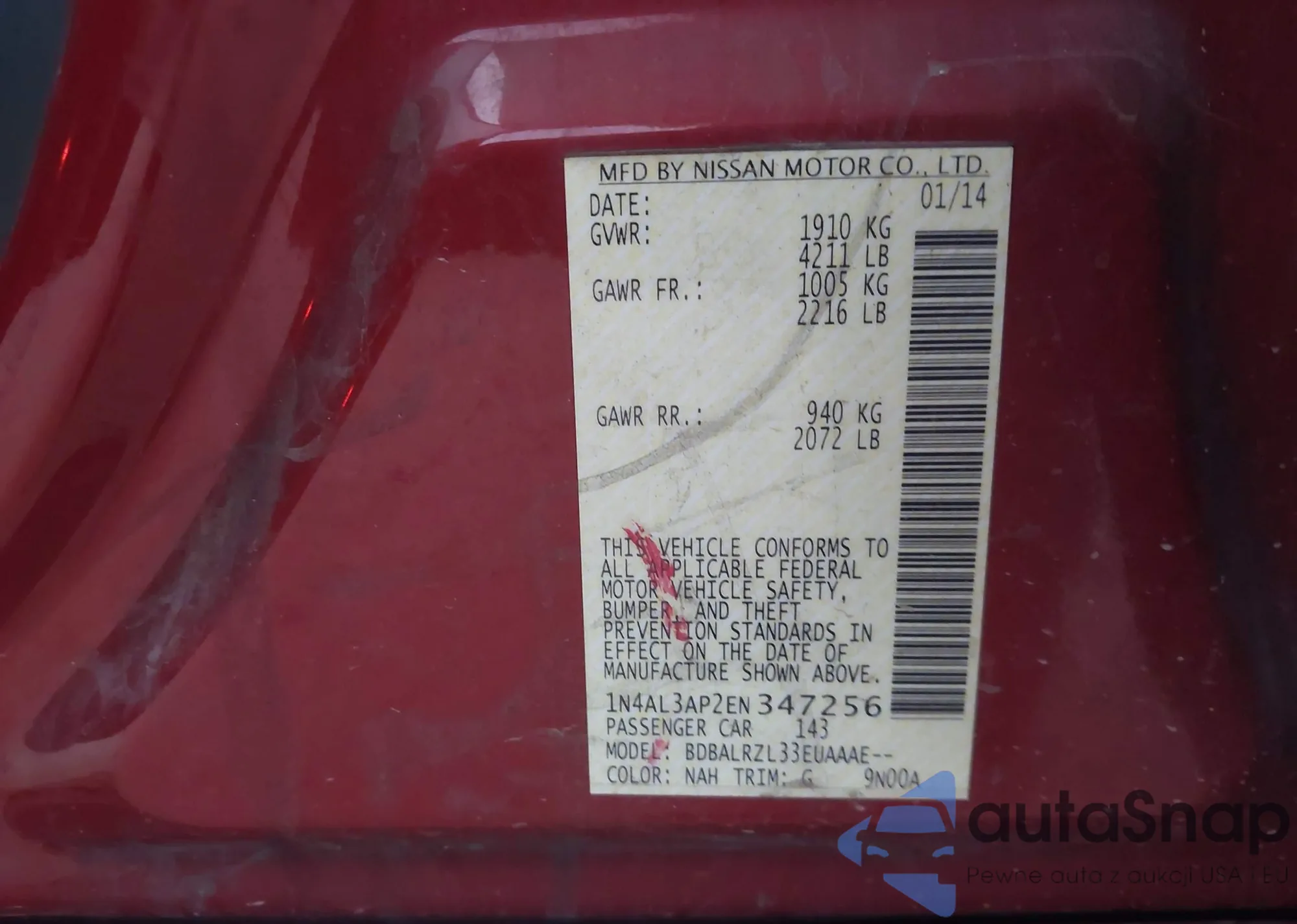 LOT: 42658546 VIN: 1N4AL3AP2EN347256