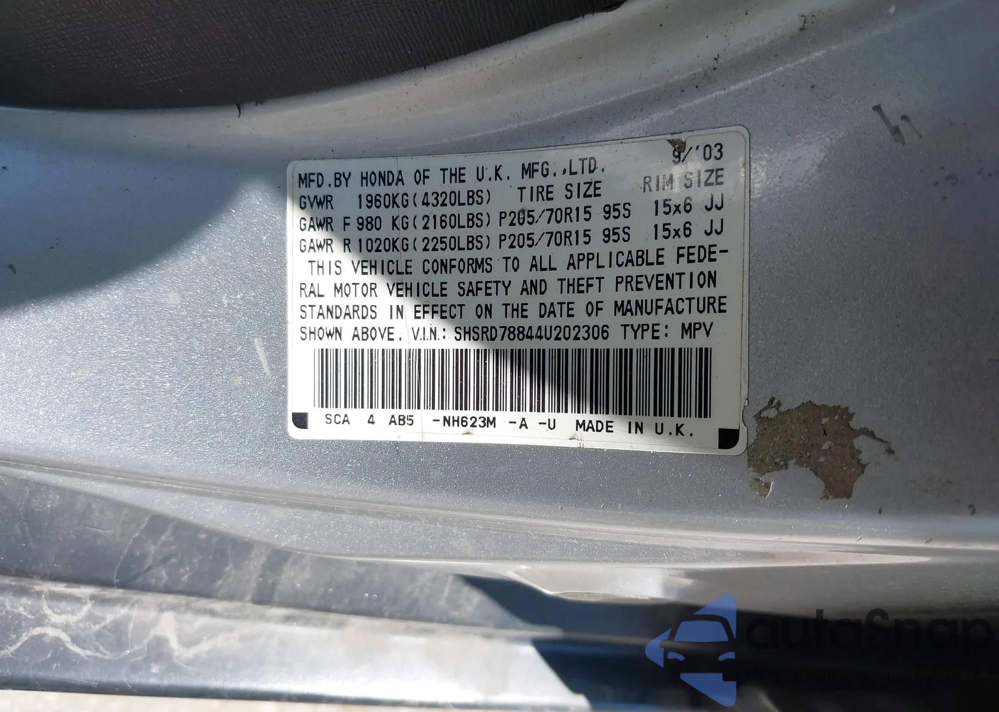 • VIN SHSRD78844U202306