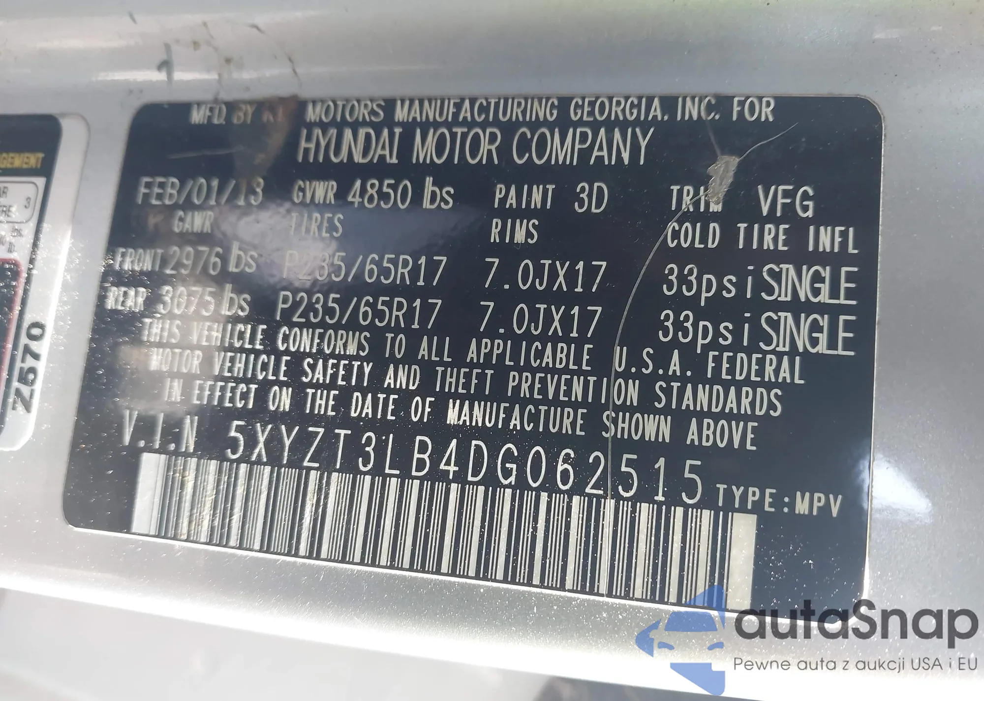 • VIN 5NPEB4AC3DH556392