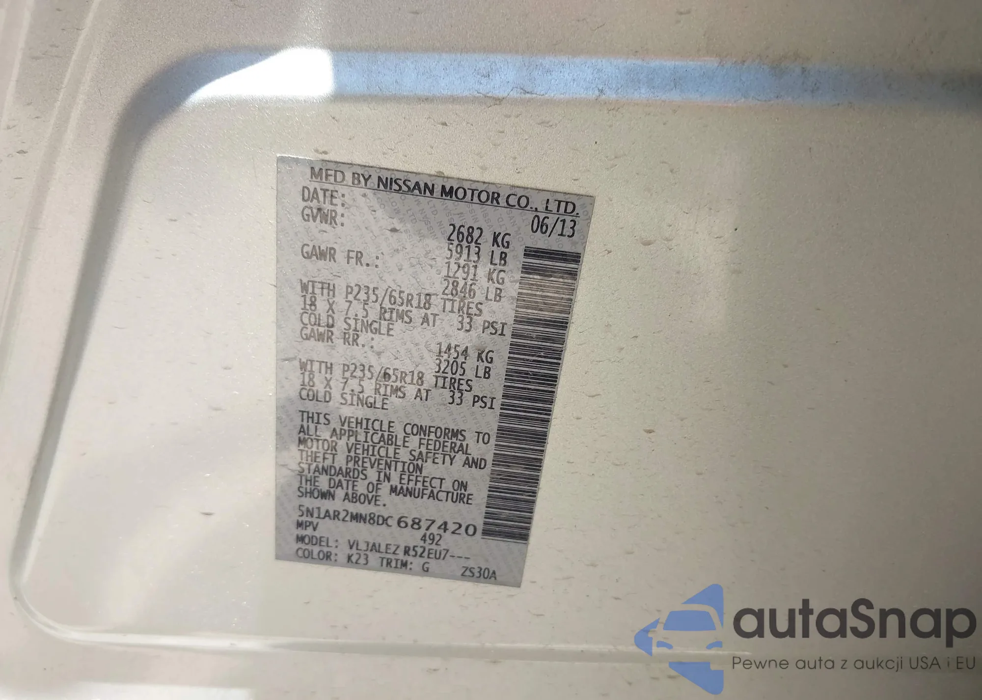 • VIN 5N1AL0MN3FC506958