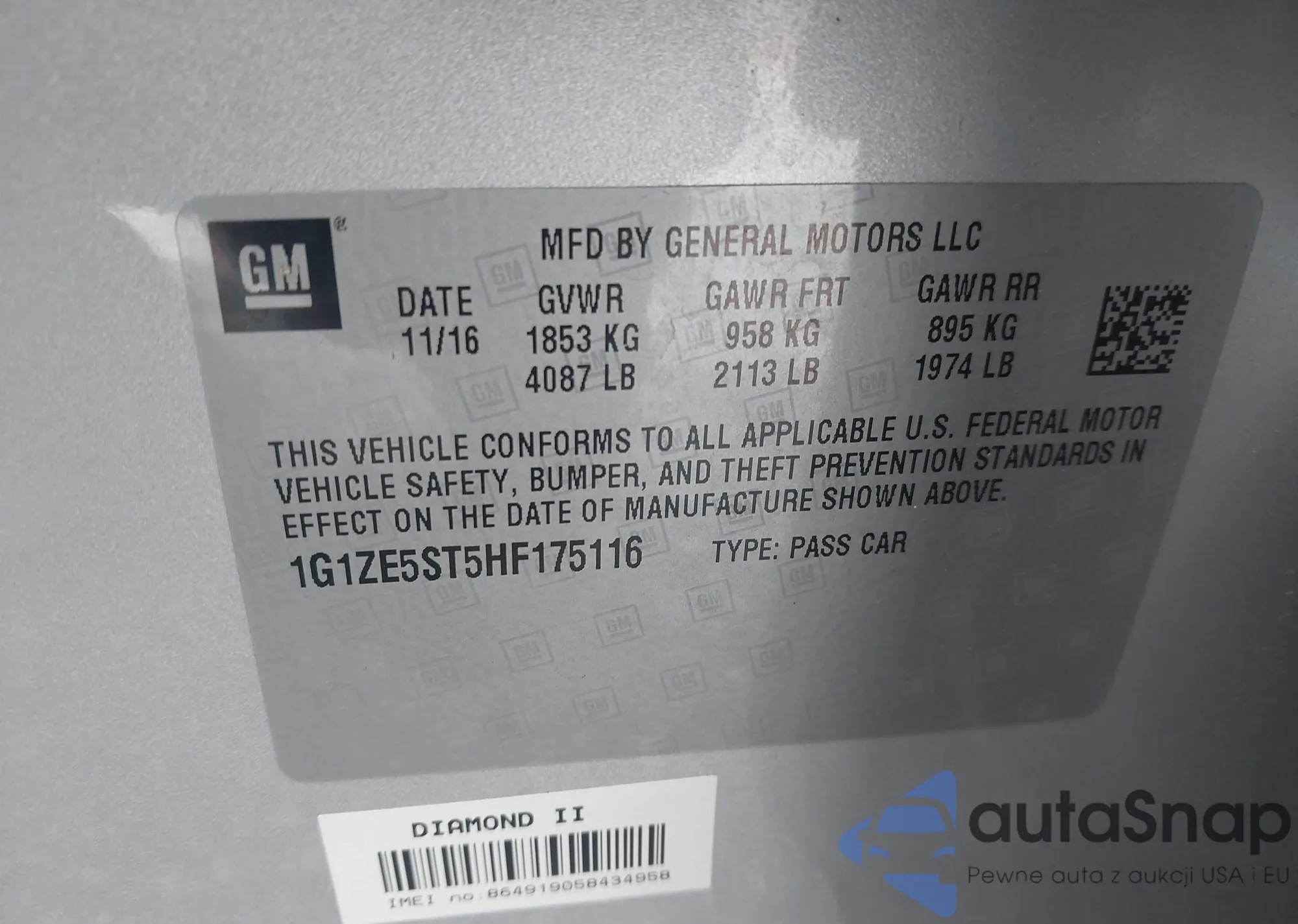 • VIN 1G1ZE5ST5HF175116