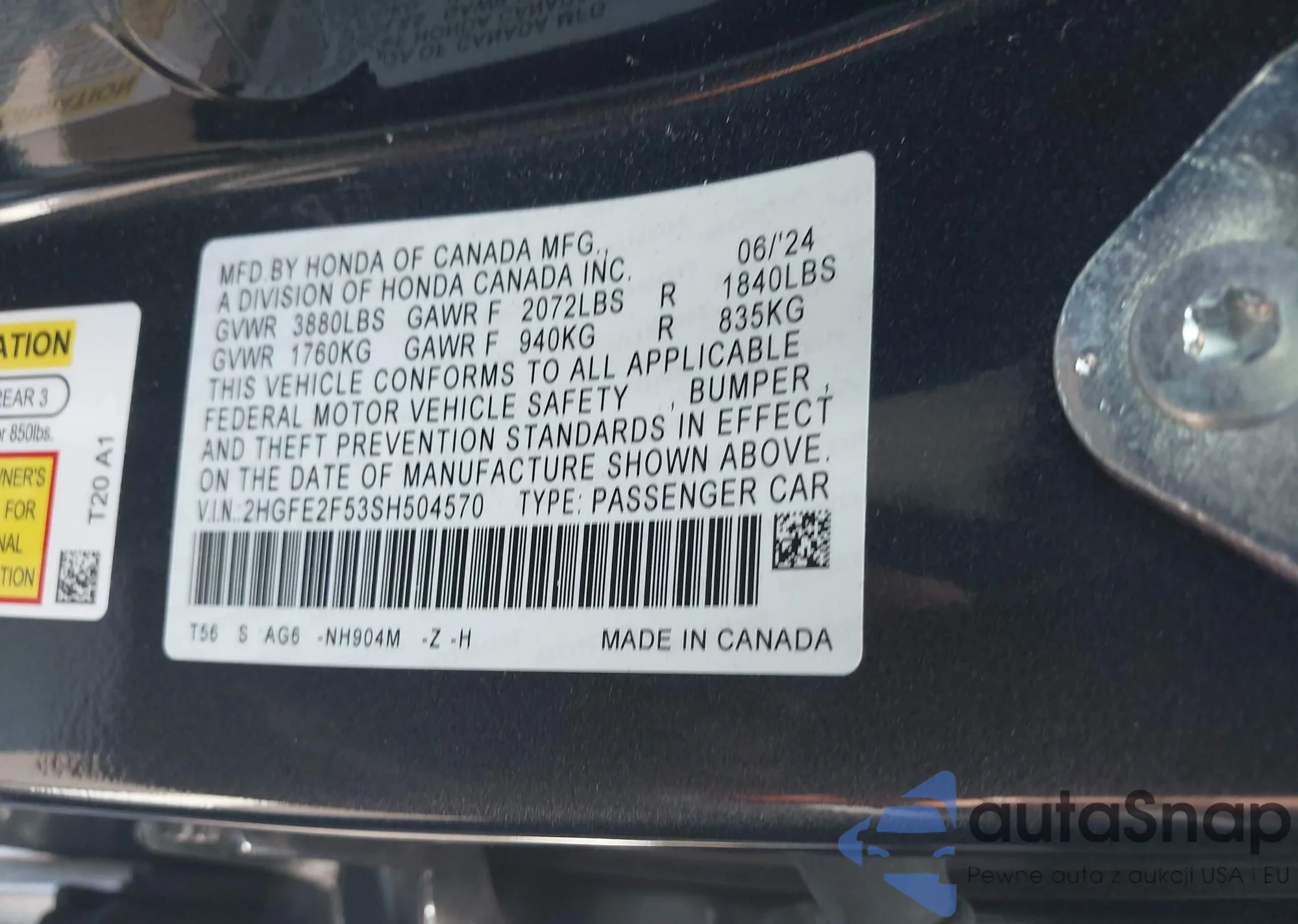 • VIN 2HGFE2F53SH504570