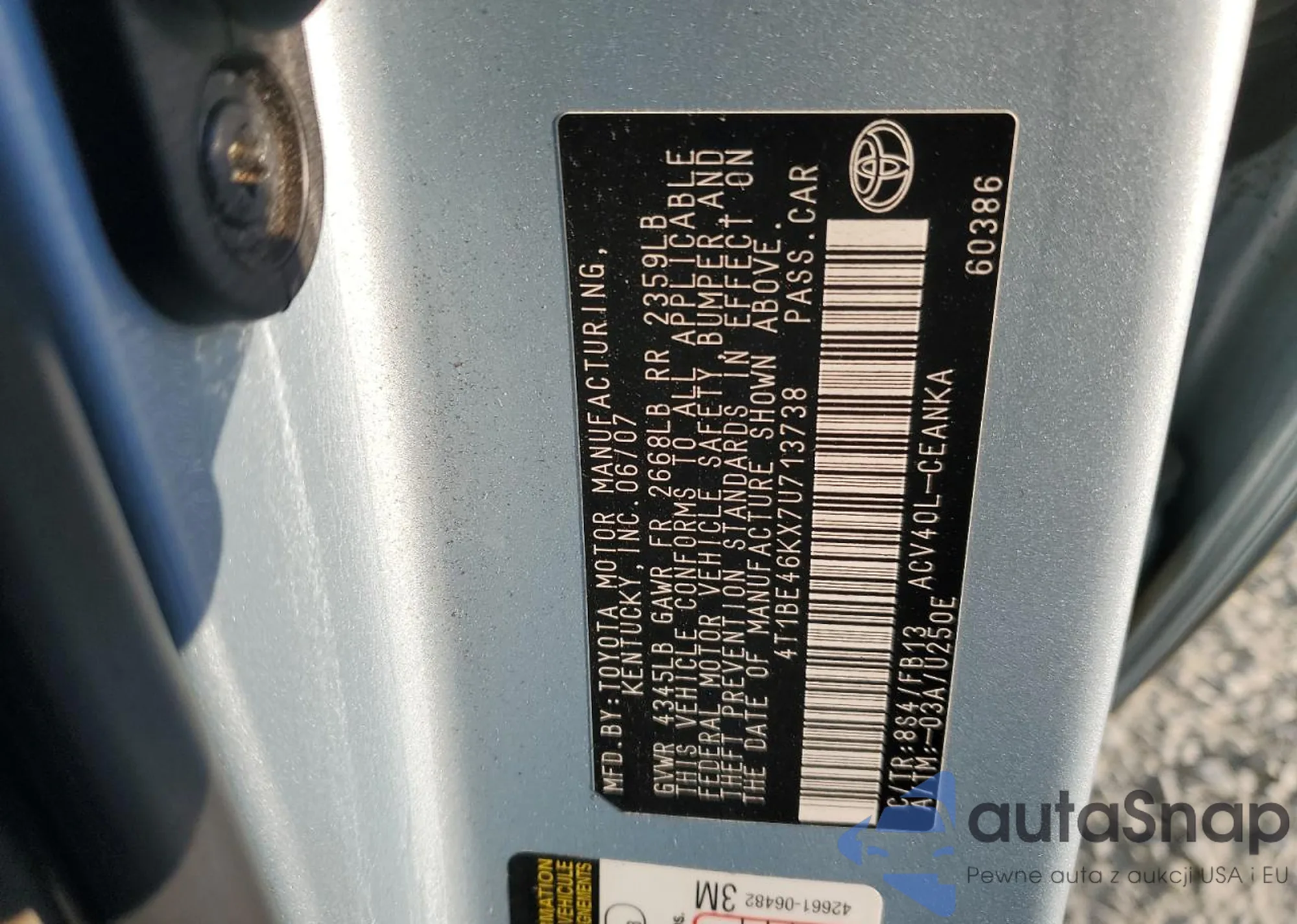 • VIN 4T1BE46KX7U713738