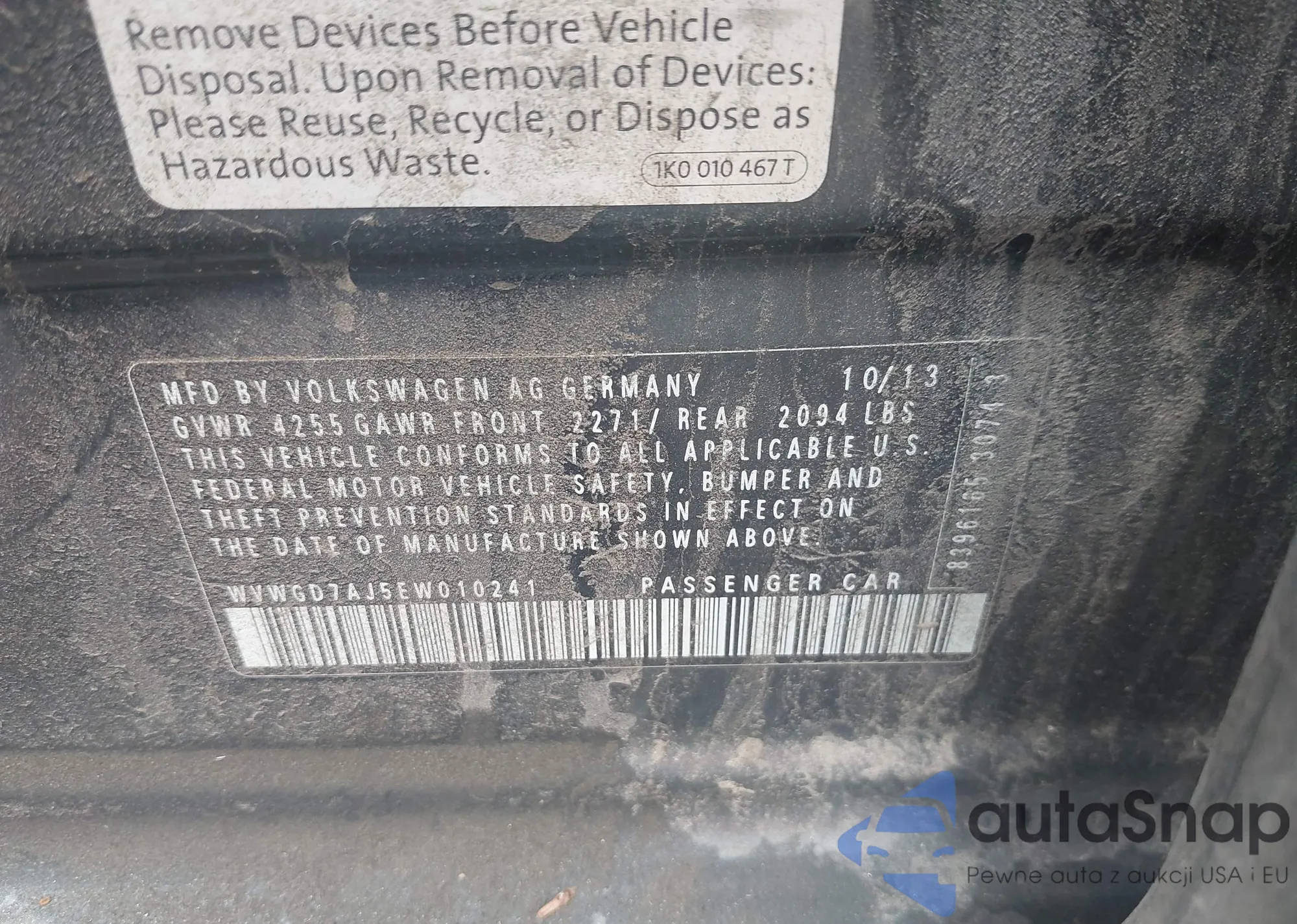 • VIN WVWGD7AJ5EW010241