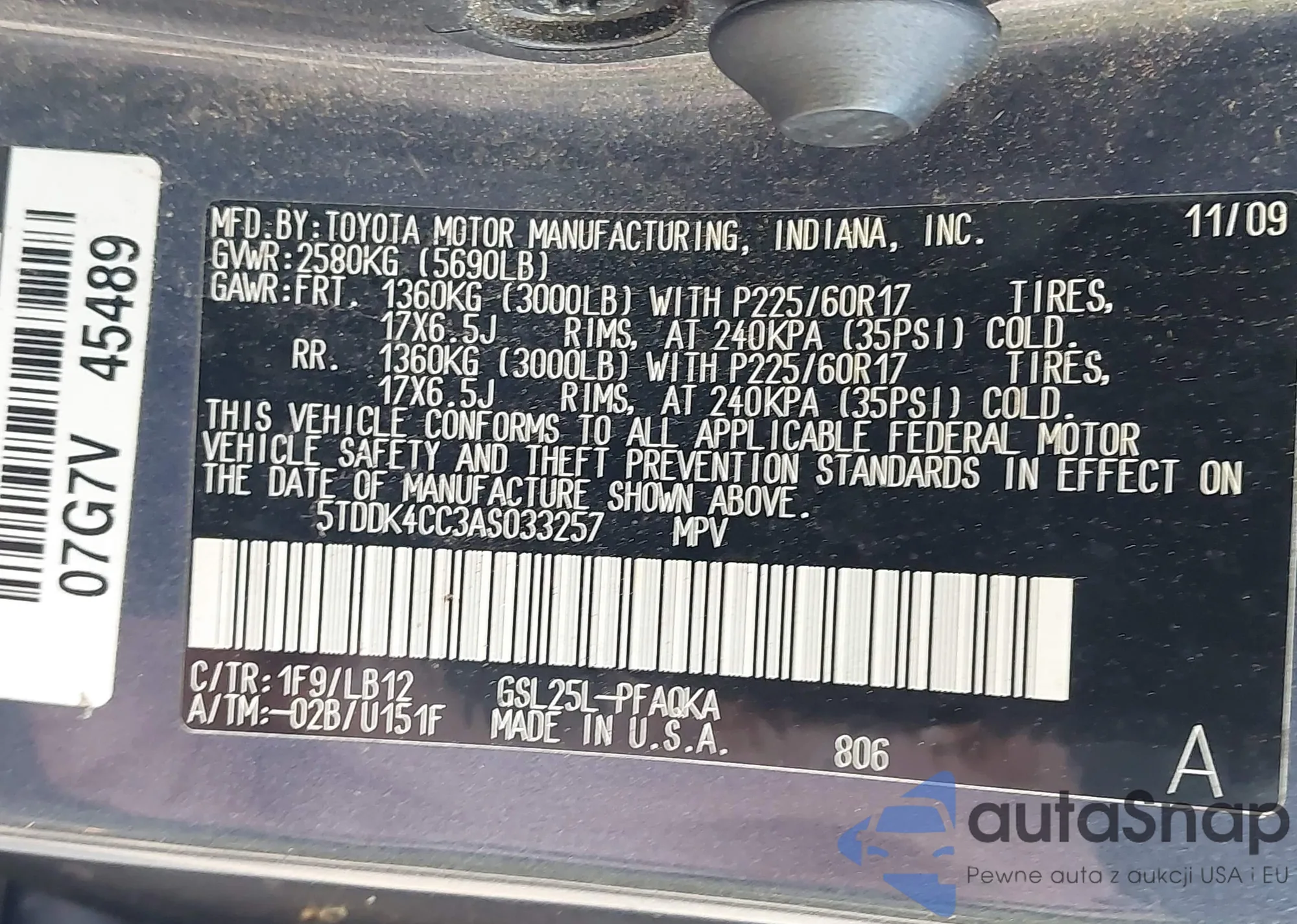 • VIN 5TDDK4CC3AS033257