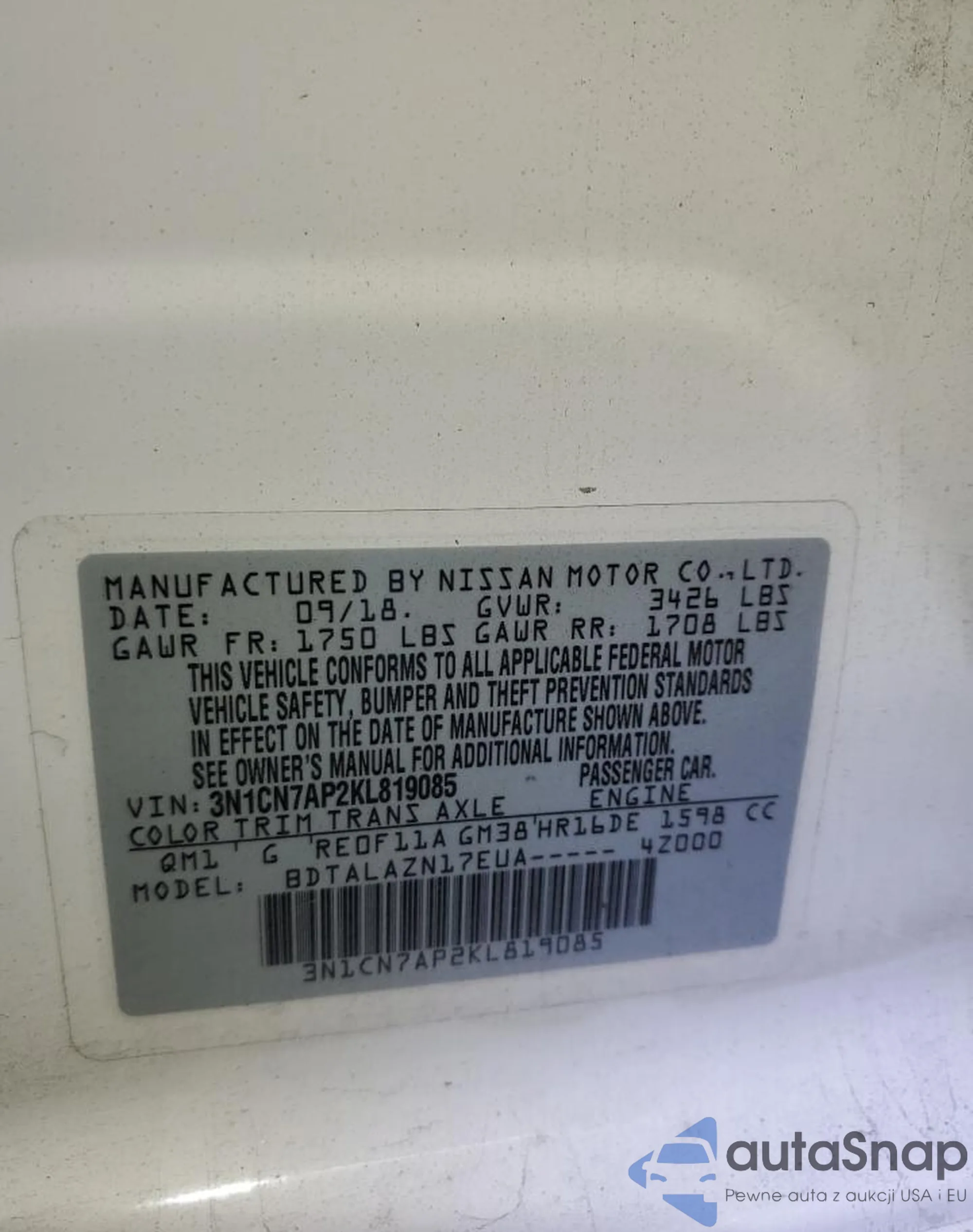 • VIN 3N1CN7AP2KL819085