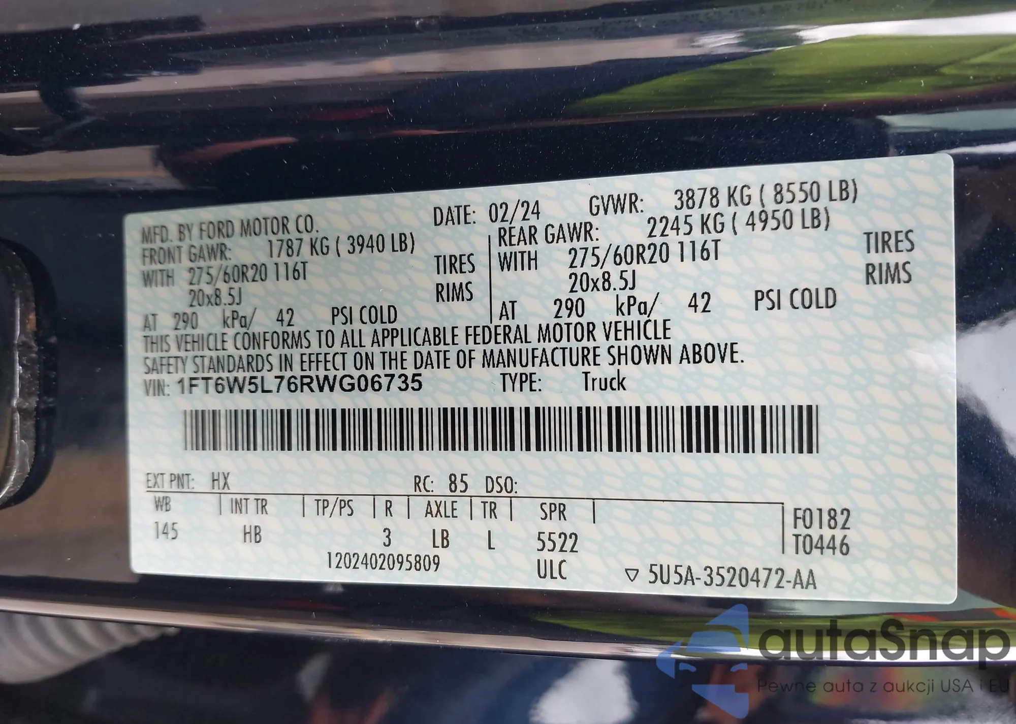 LOT: 43007878 VIN: 1FT6W5L76RWG06735