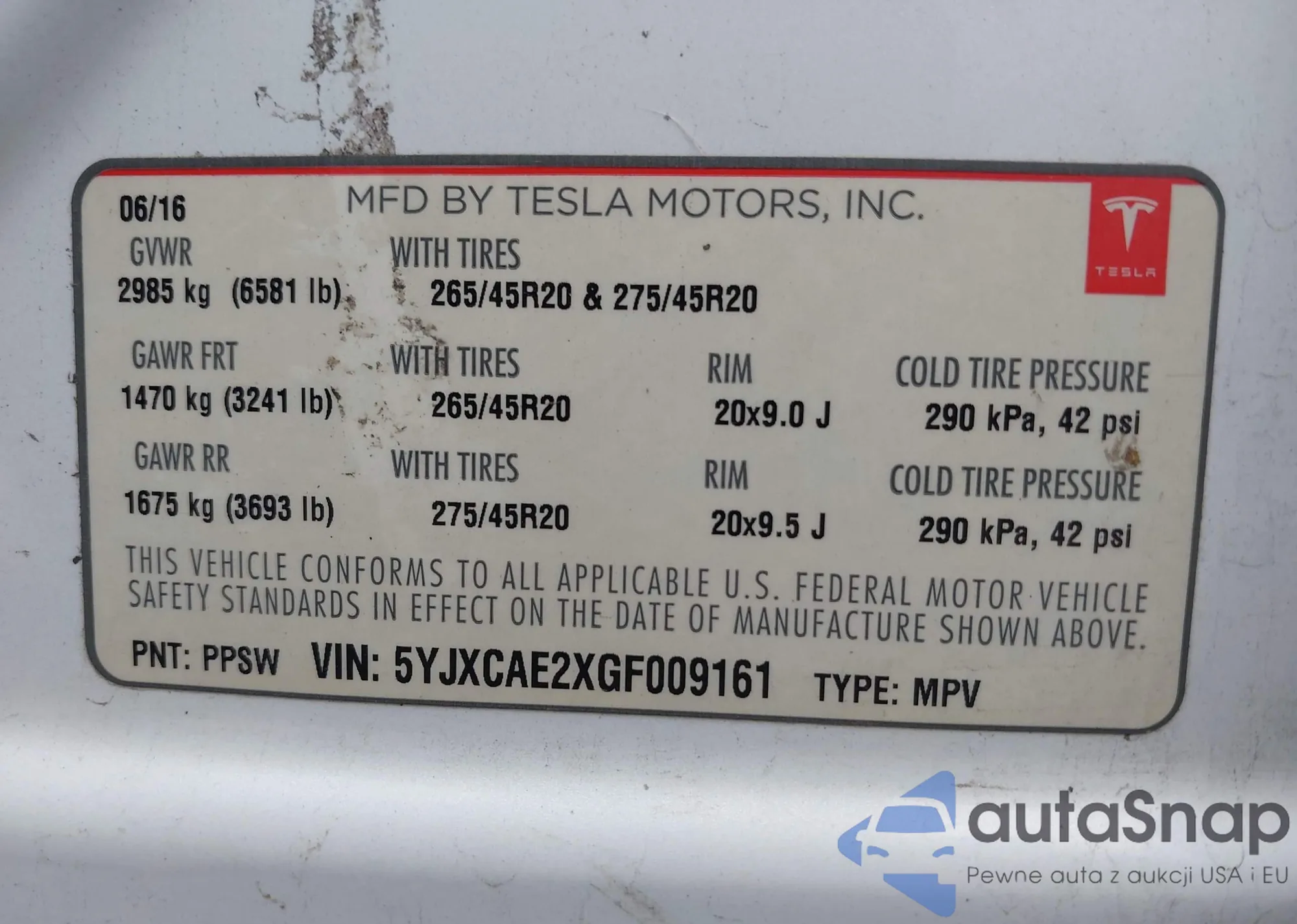 2016 Tesla Model X 60D/70D/75D/90D from USA, damaged, VIN 5YJXCAE2XGF009161