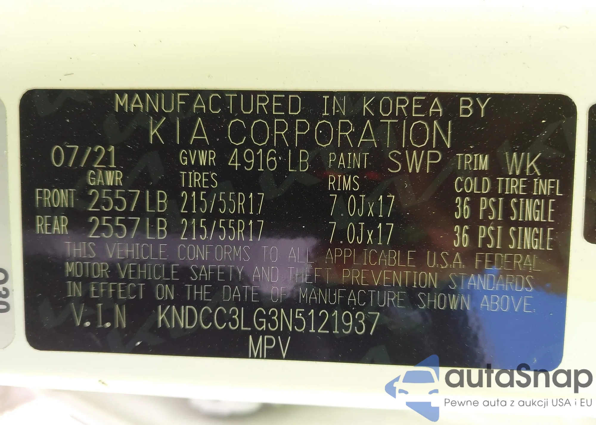 • VIN KNDCC3LG3N5121937
