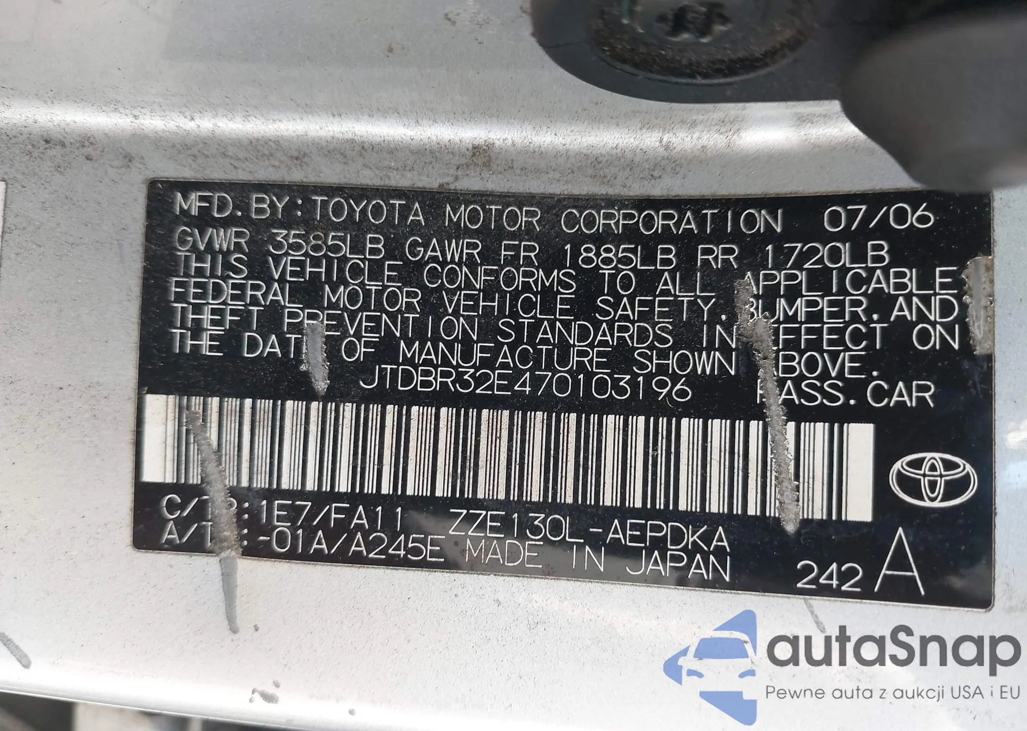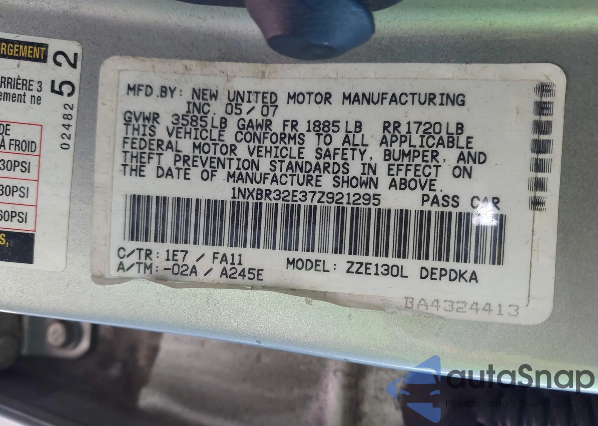LOT: 43389068 VIN: 1NXBR32E37Z921295