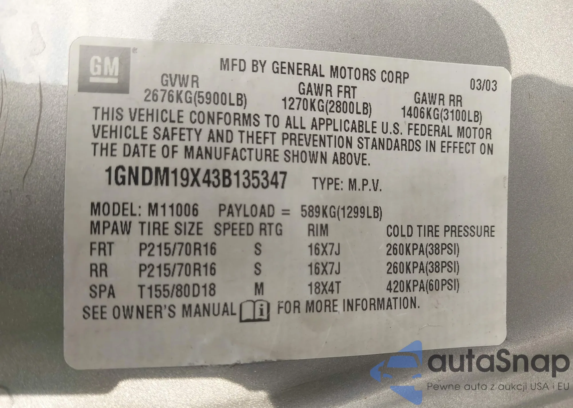 • Lot number 43389068