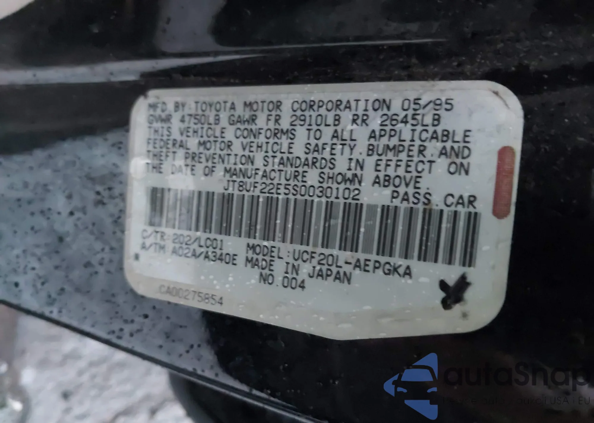 LOT: 43448389 VIN: JT8UF22E5S0030102