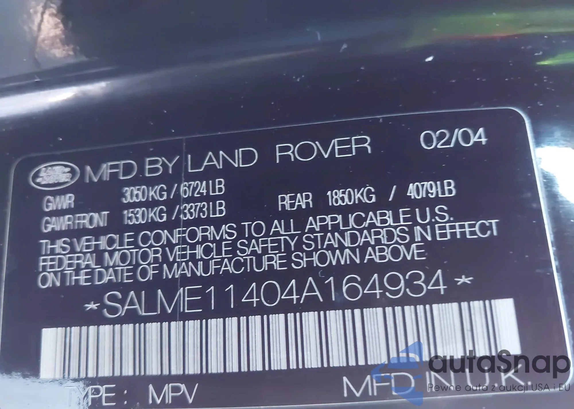 LOT: 43473686 VIN: SALME11404A164934