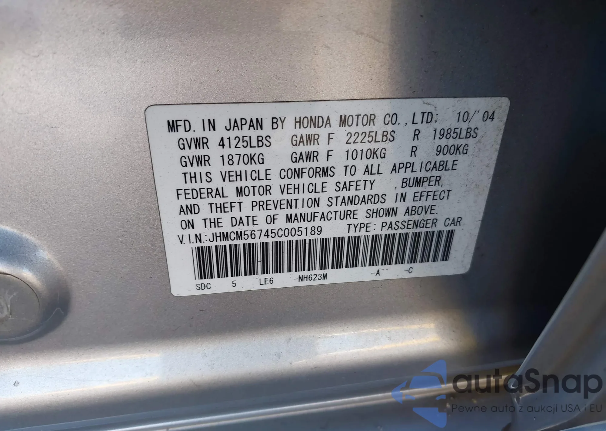 • VIN 19UUA66225A006475