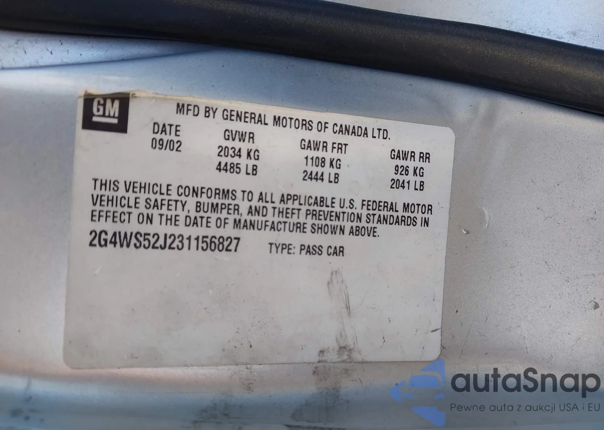 LOT: 43551792 VIN: 2G4WS52J231156827