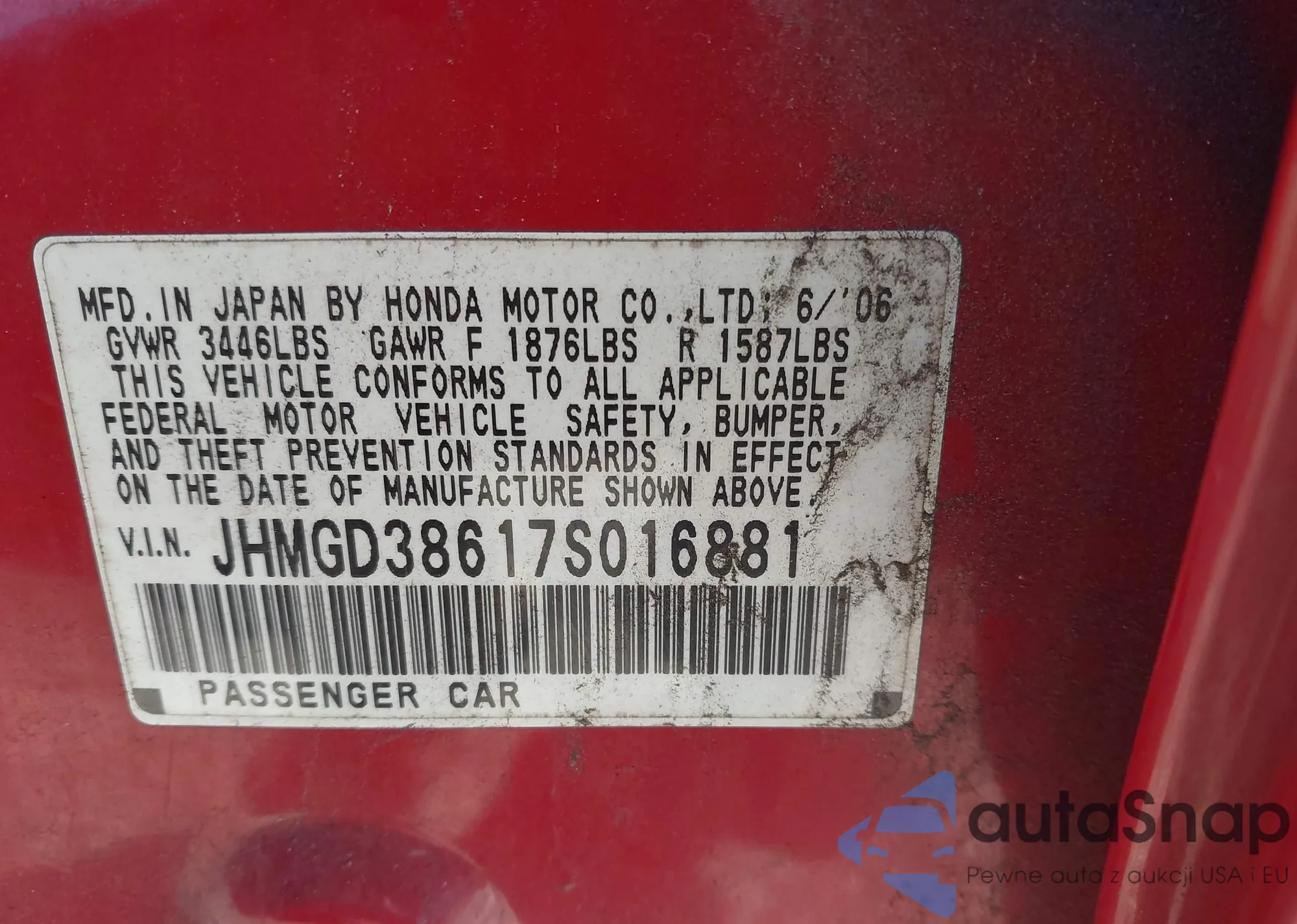 • VIN JHMGD38617S016881