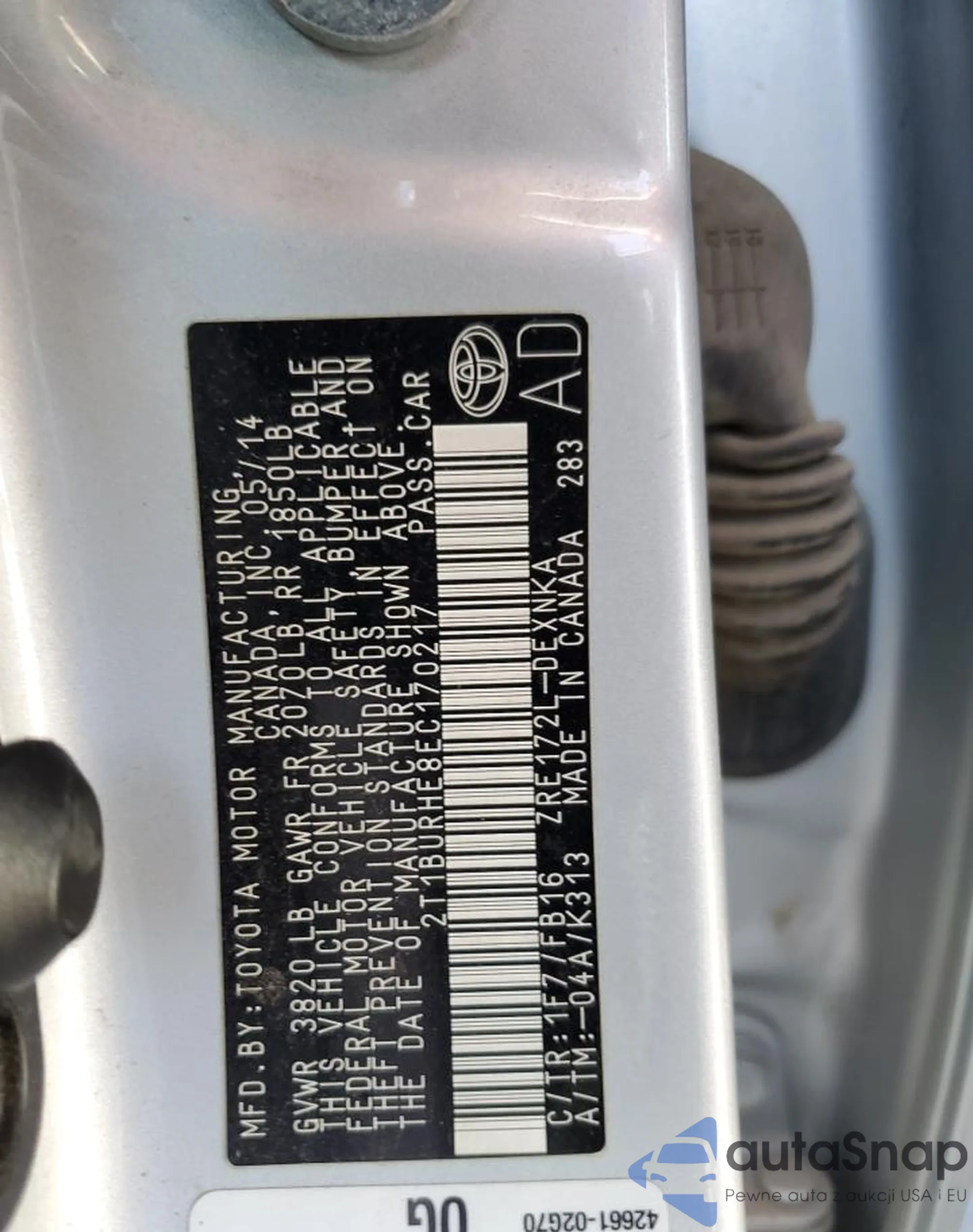 LOT: 85678775 VIN: 2T1BURHE8EC170217
