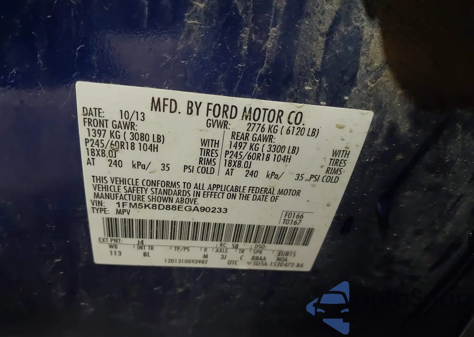 • VIN 1FM5K8D88EGA90233