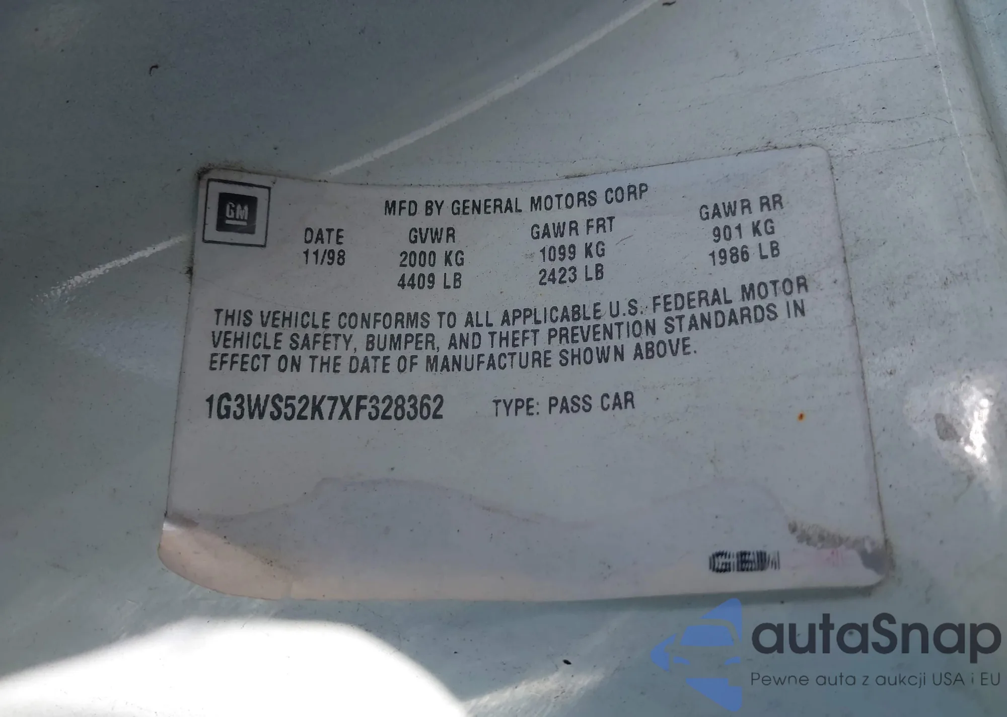 LOT: 43293422 VIN: 1G3WS52K7XF328362