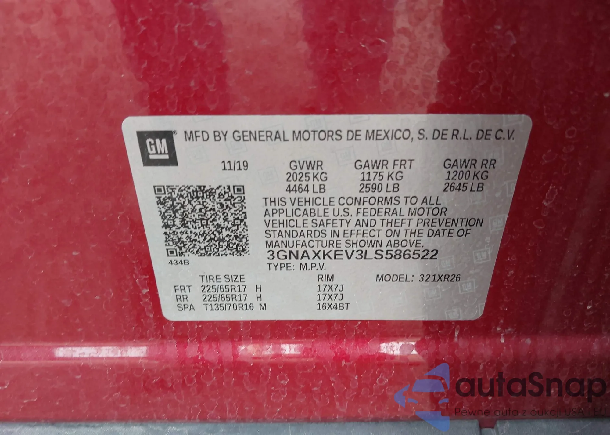 LOT: 43339970 VIN: 3GNAXKEV3LS586522