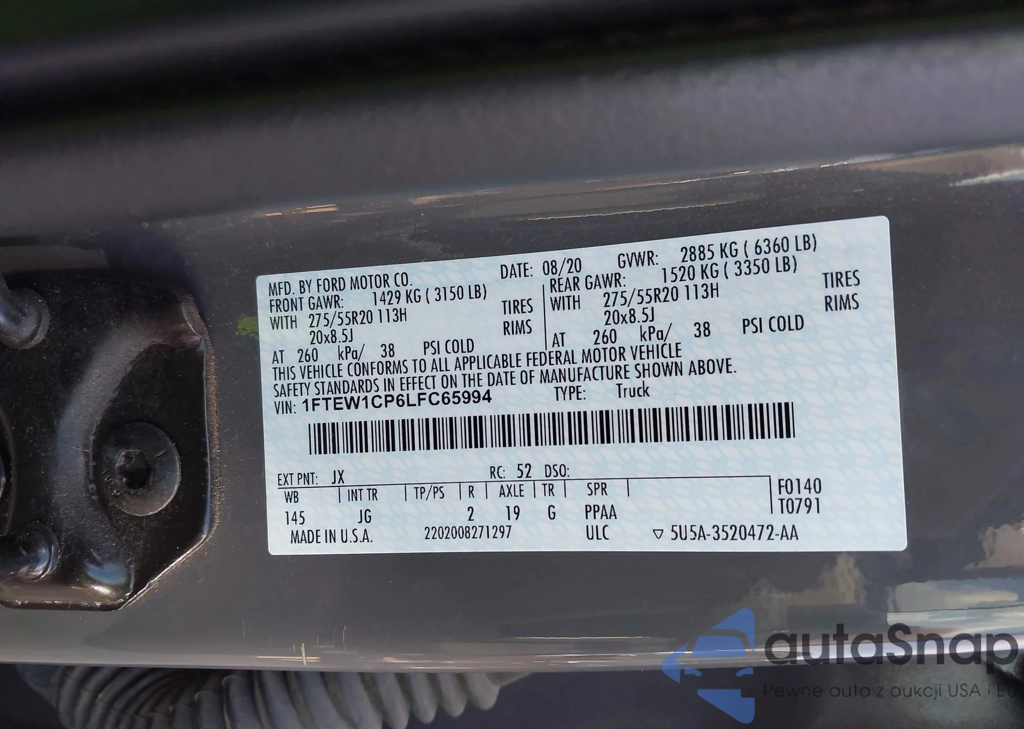 • VIN 1FTEW1CP6LFC65994