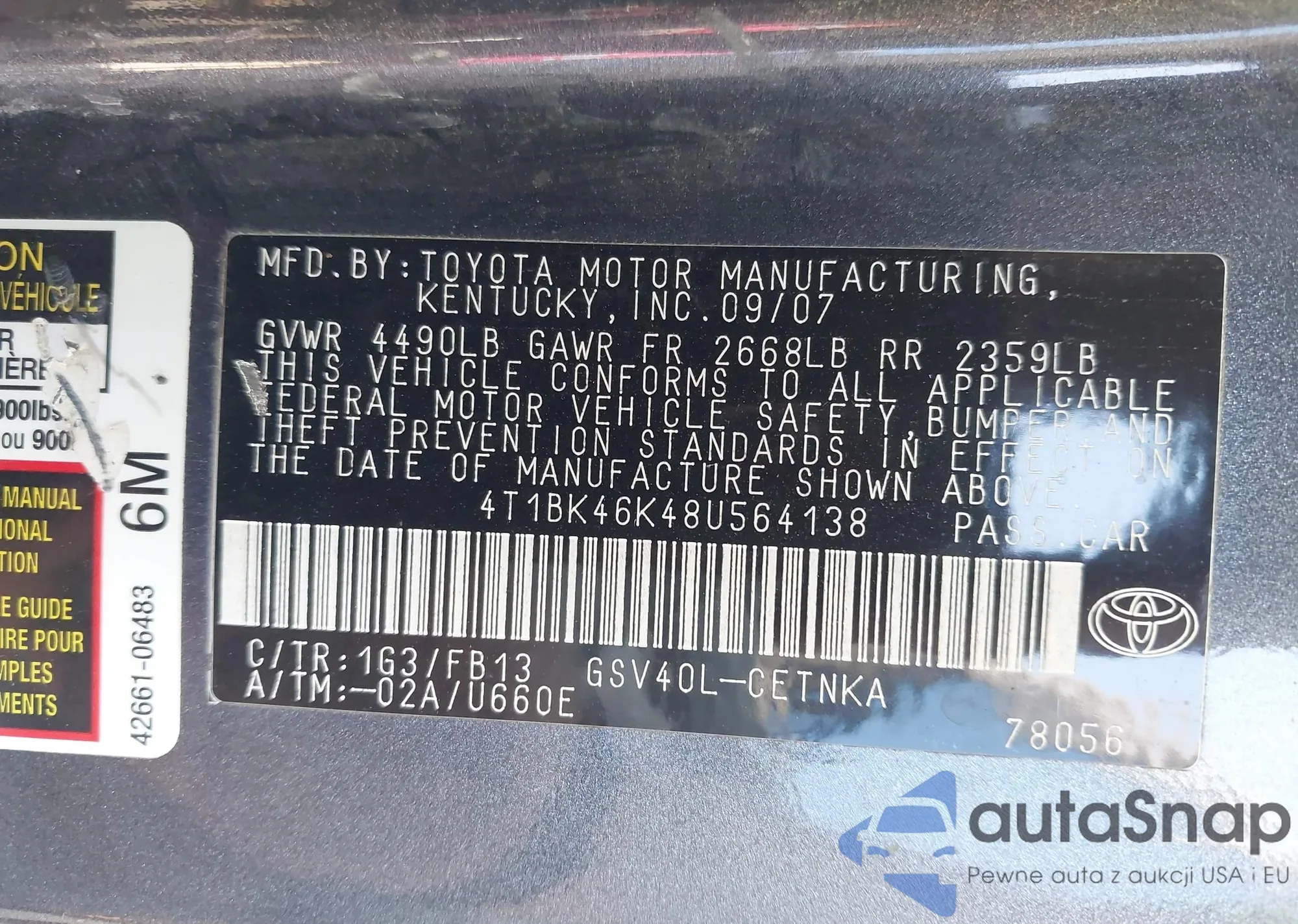• VIN 4T1BK46K48U564138