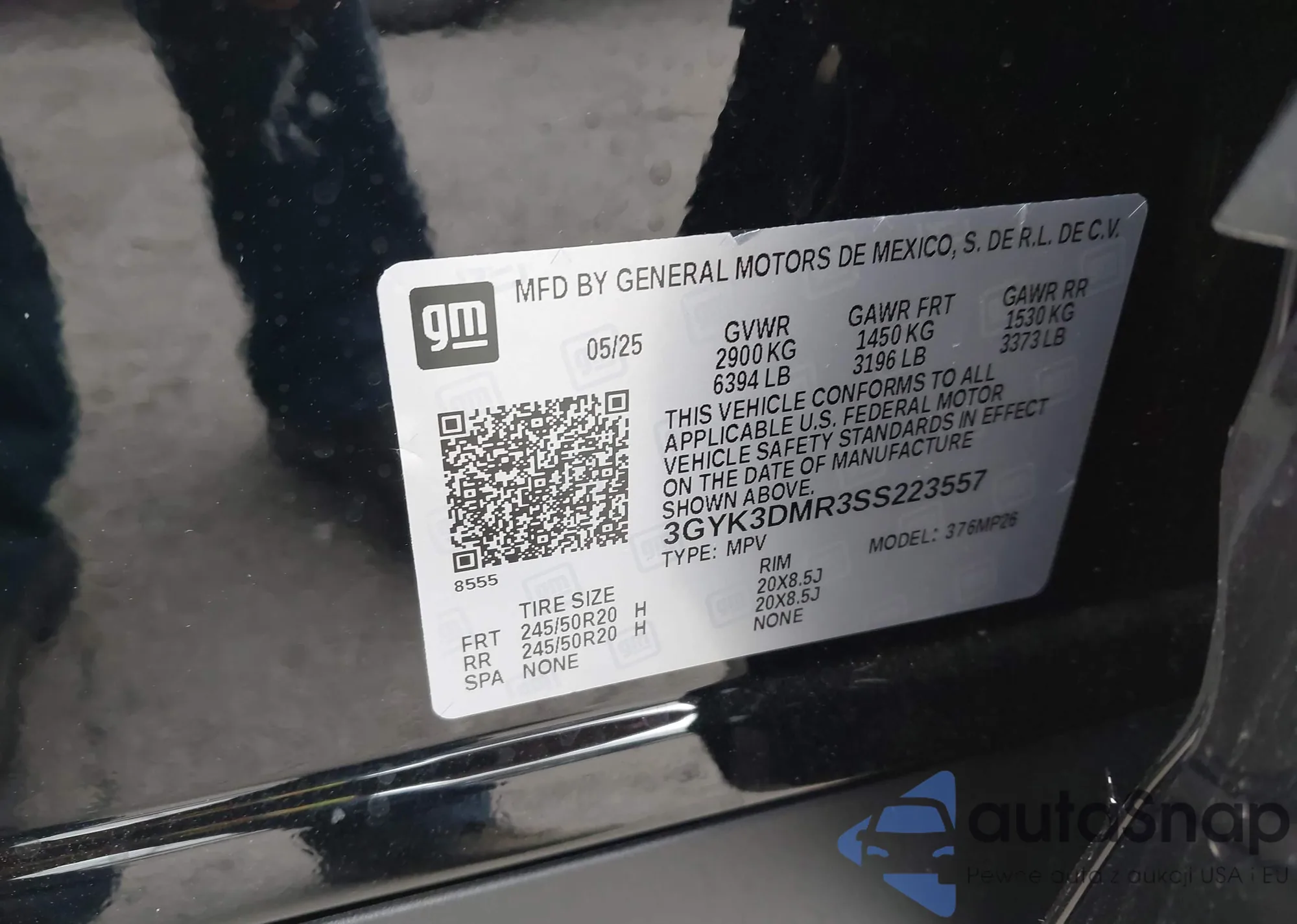 • VIN 3GYK3DMR3SS223557