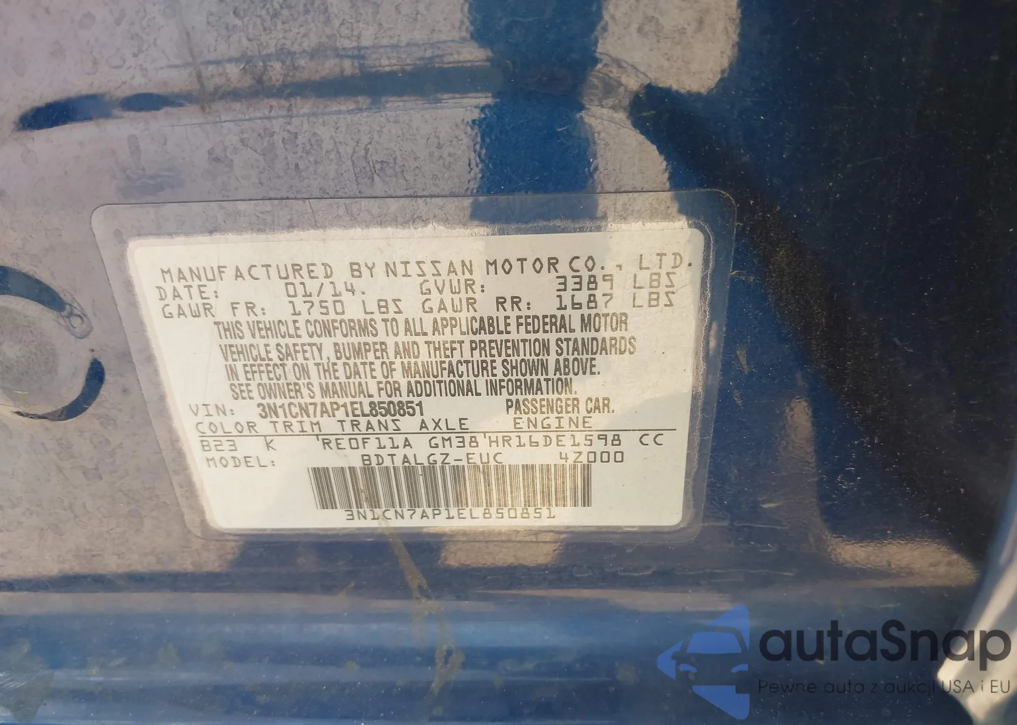 • VIN 5NPEC4AC7DH703326