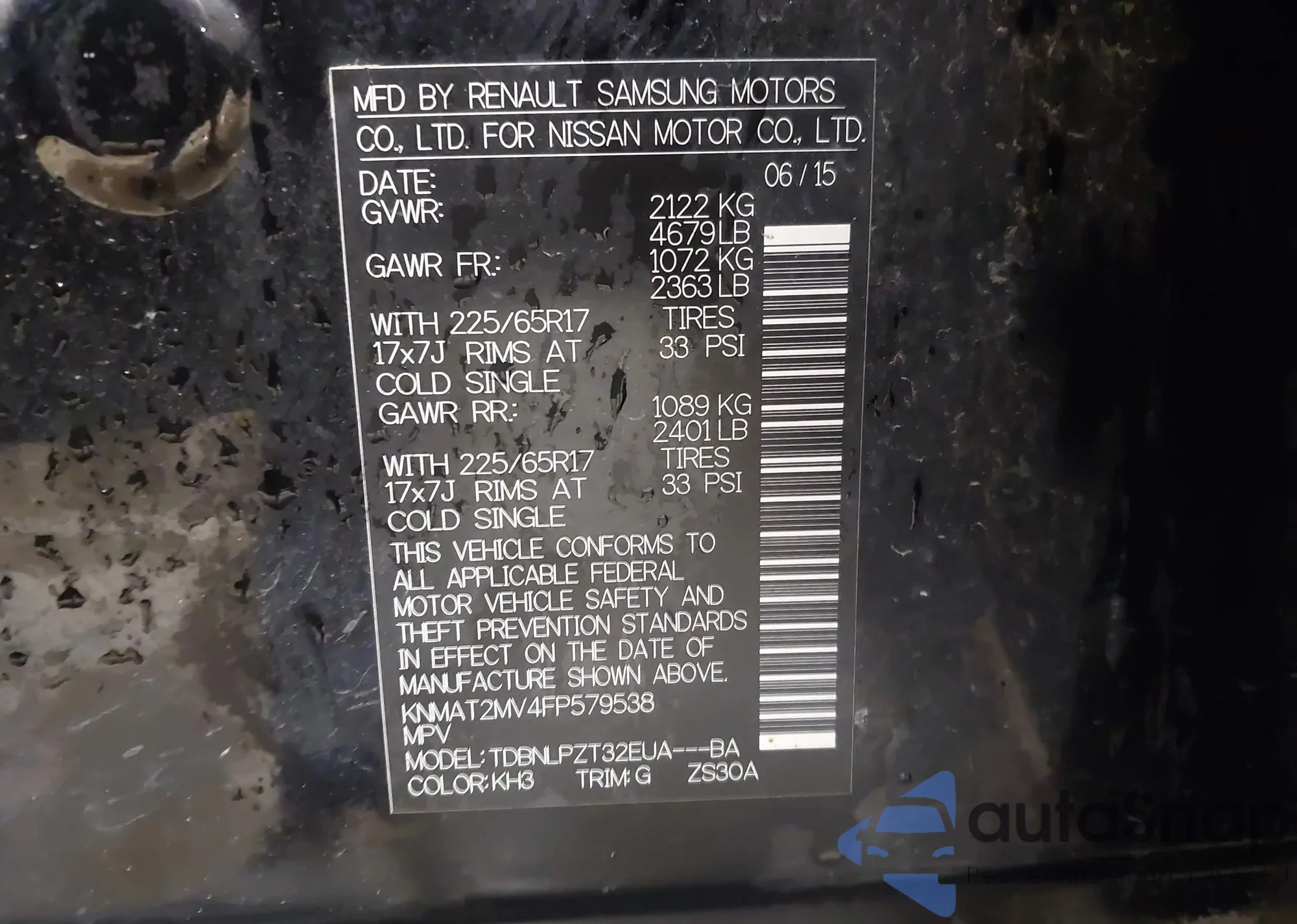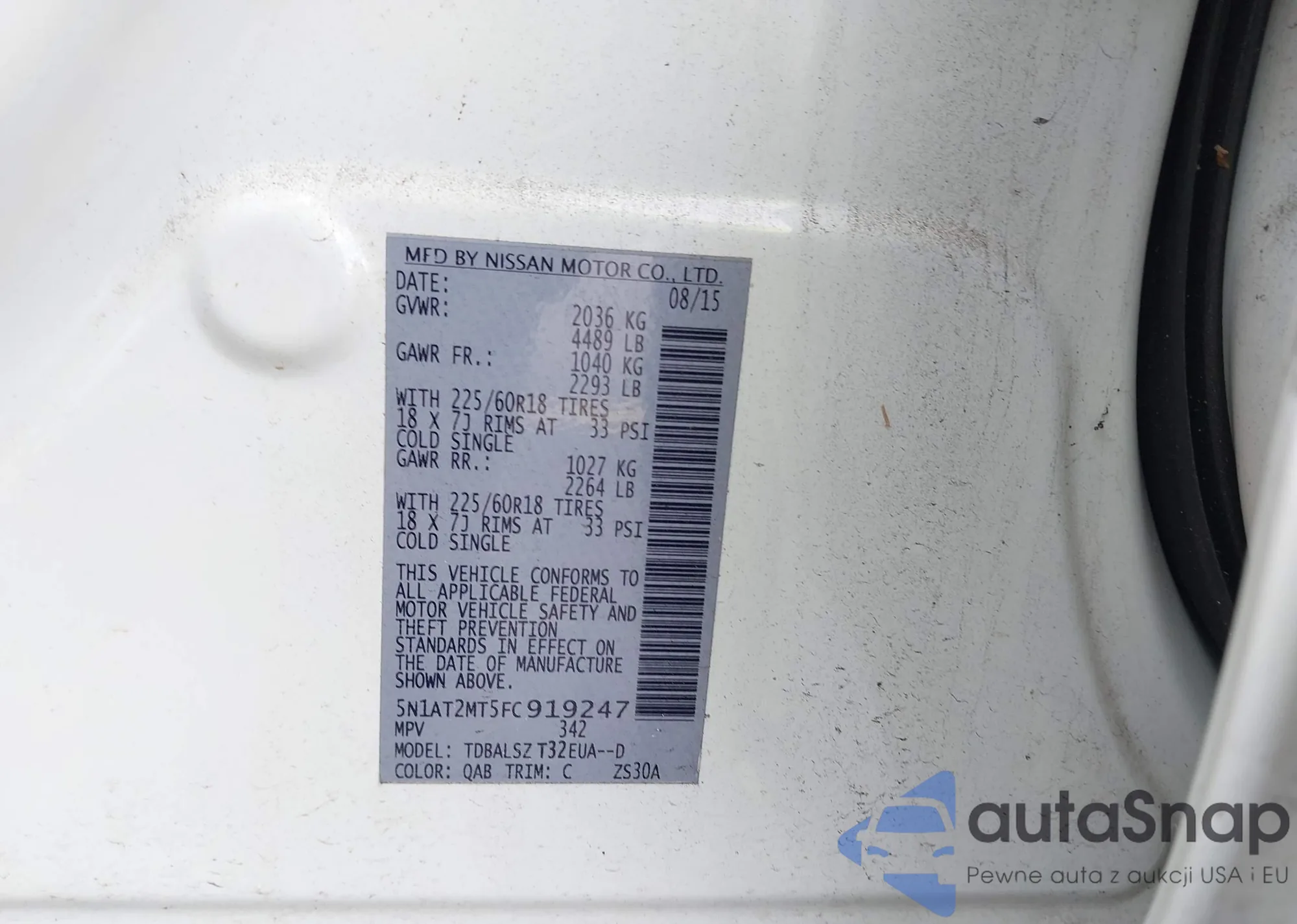 LOT: 43216901 VIN: 5N1AT2MT5FC919247