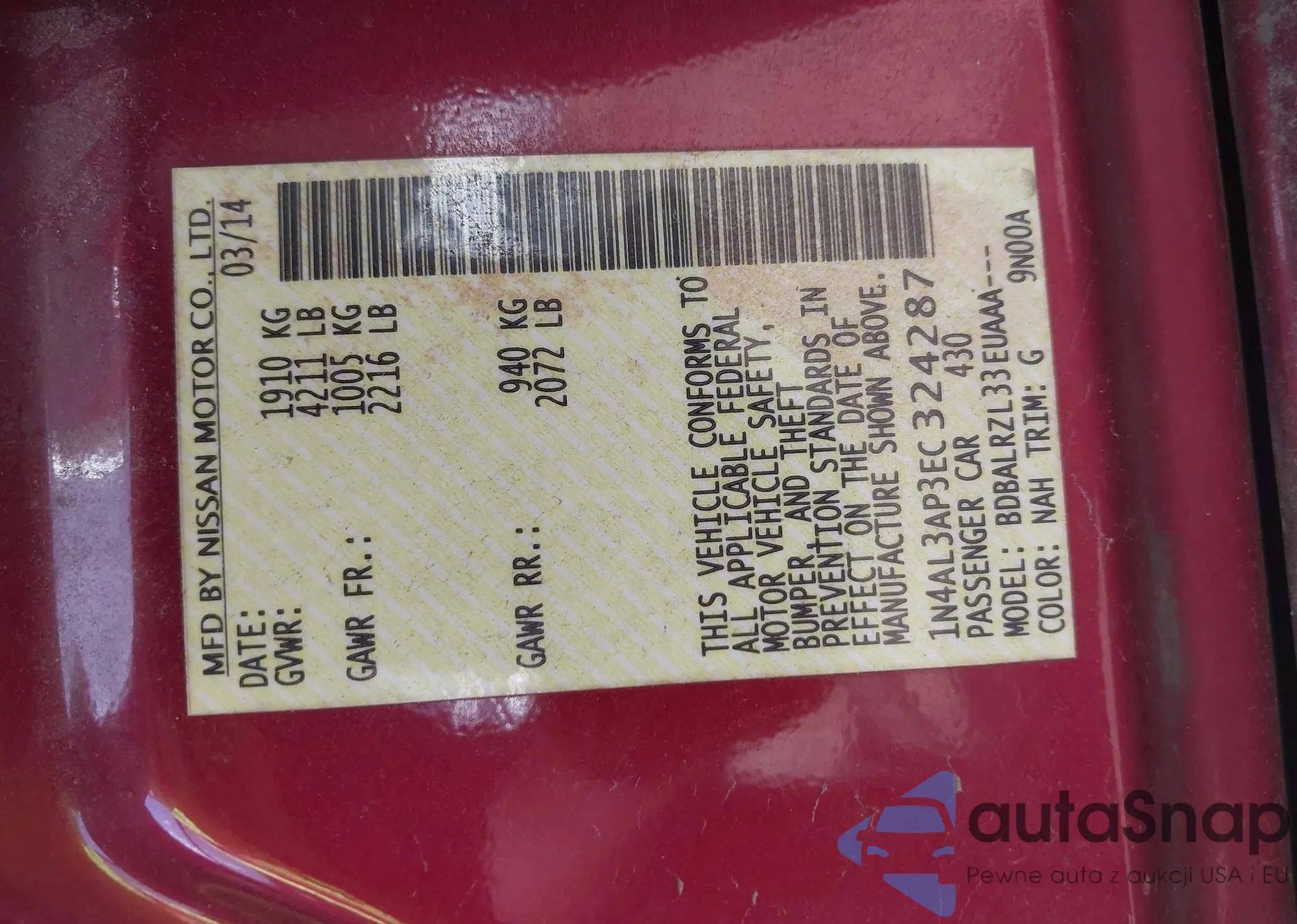 • VIN SAJAR4BG4HA959940