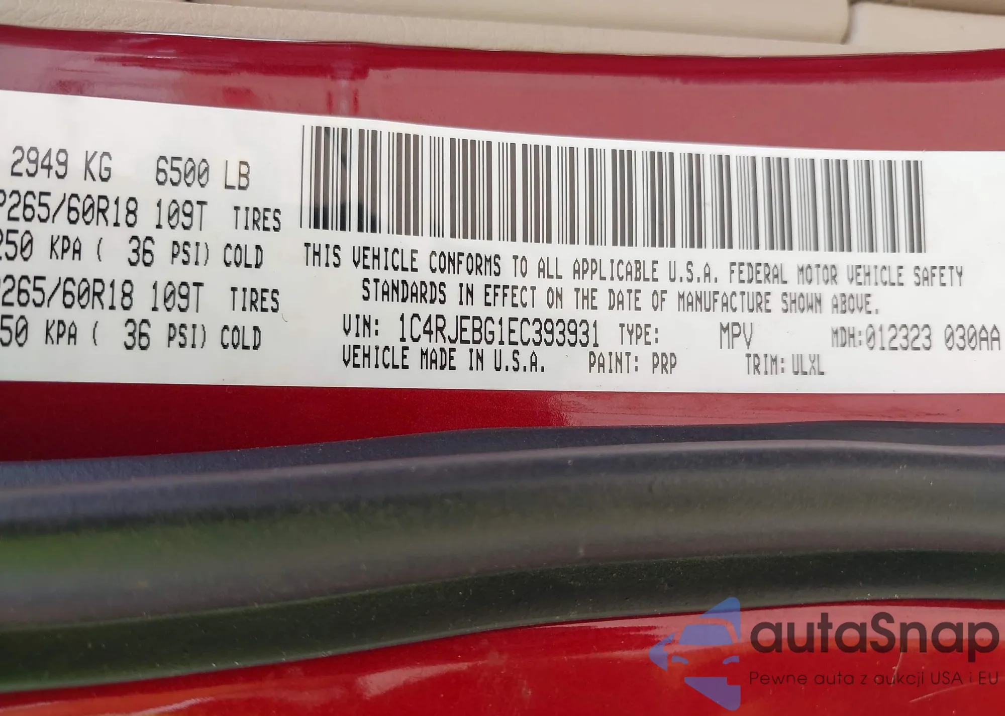 • VIN 1C4PJMCB3GW235421