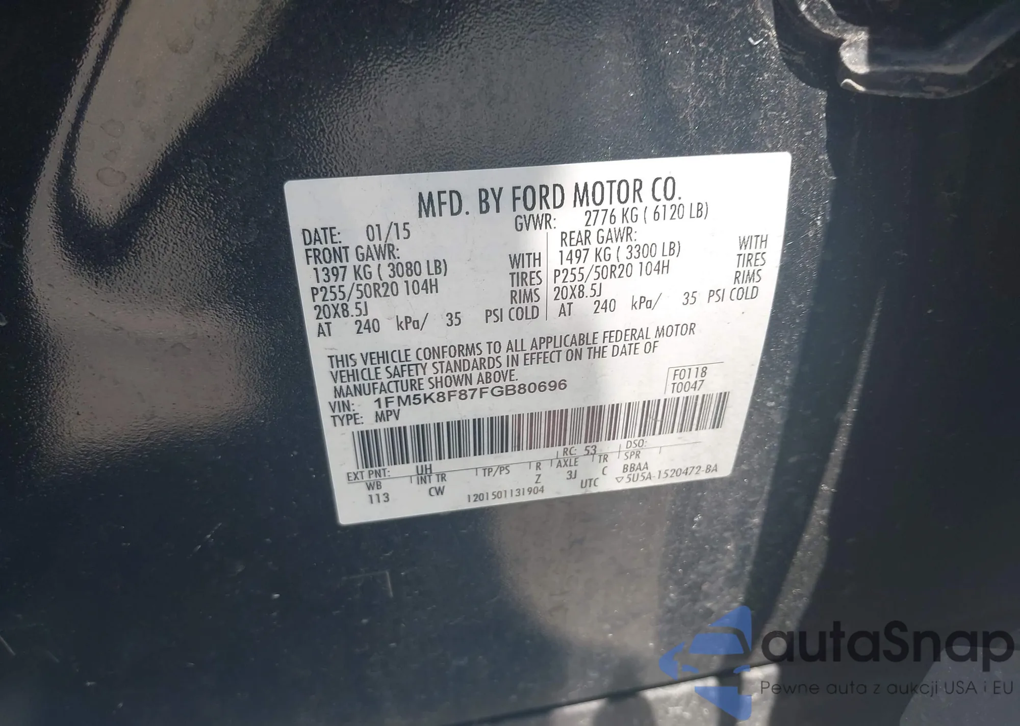 • VIN 1FM5K8F87FGB80696
