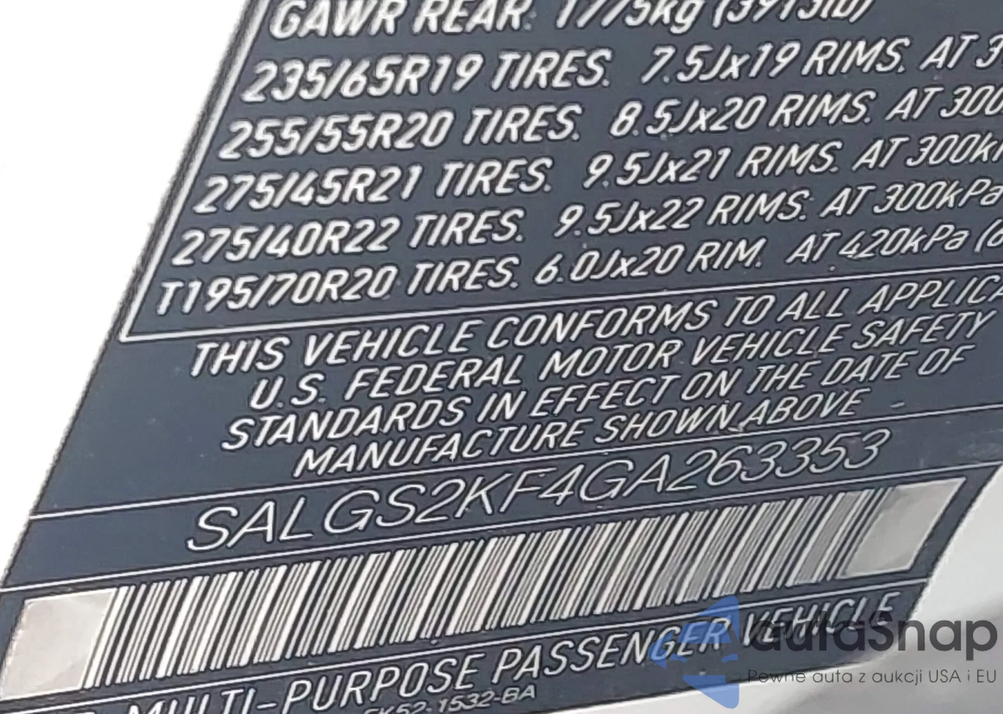 • VIN SALGS2KF4GA263353