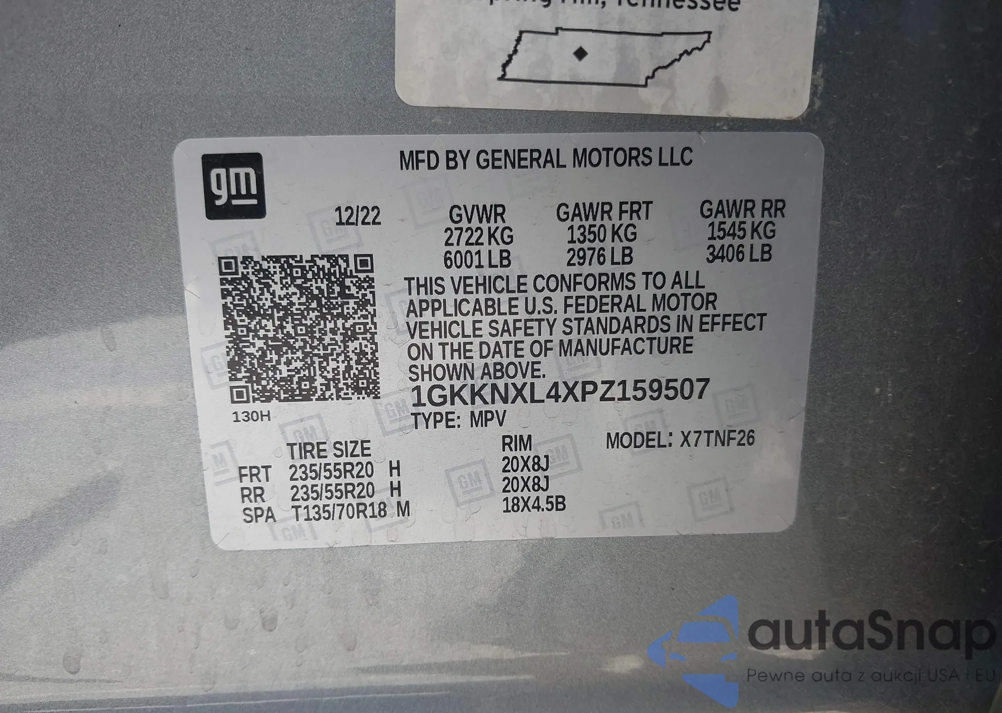 LOT: 43189410 VIN: 1GKKNXL4XPZ159507