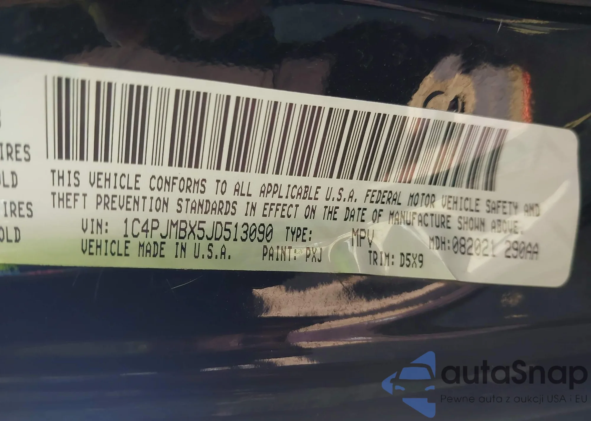 LOT: 43191115 VIN: 1C4PJMBX5JD513090