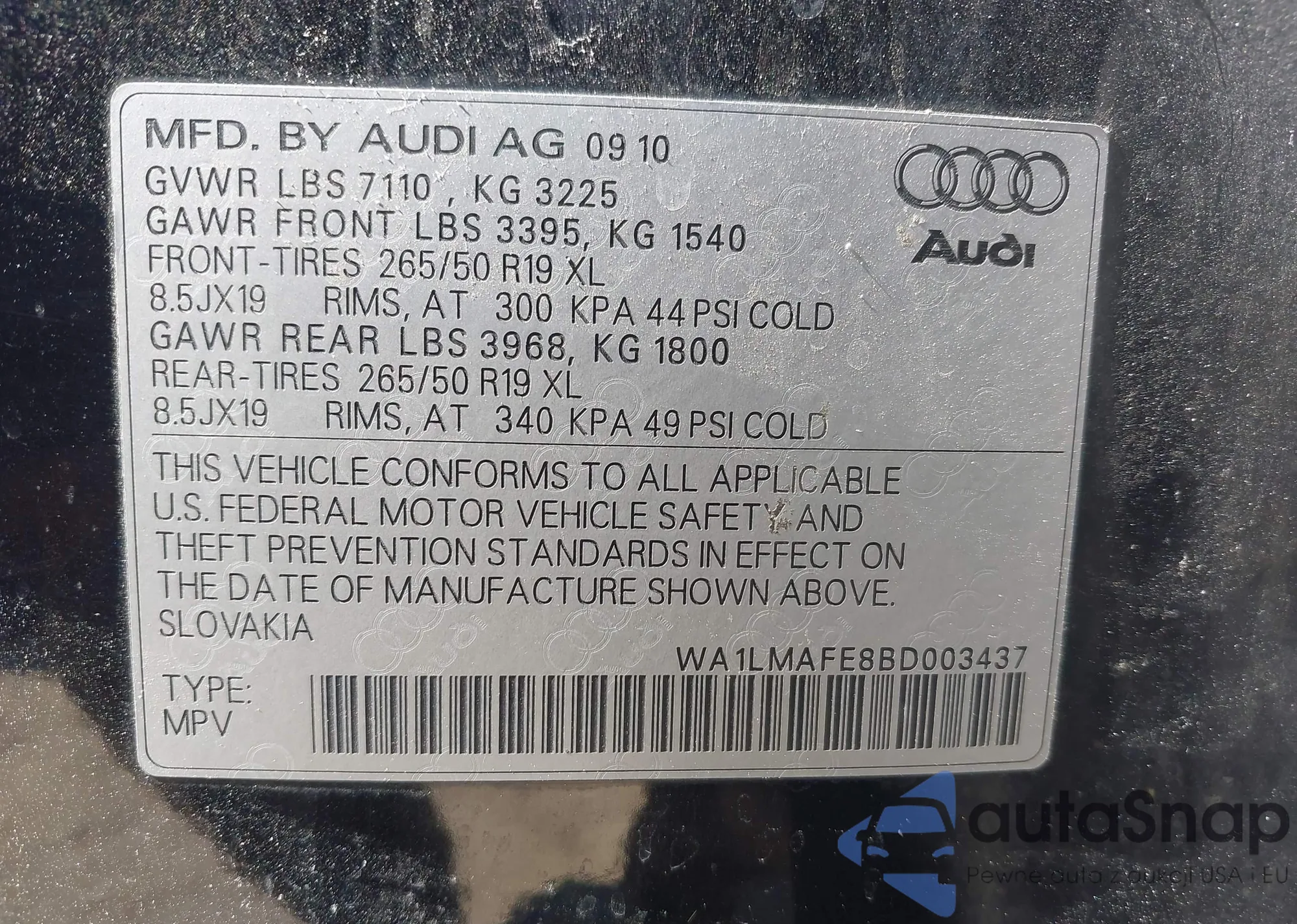 LOT: 43148589 VIN: WP0CB2A82HS240836