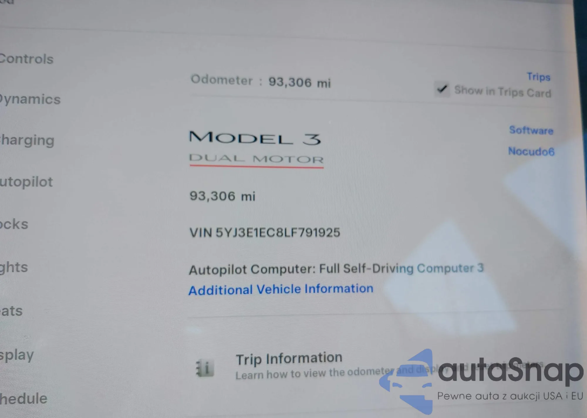 • VIN 5YJ3E1EC8LF791925