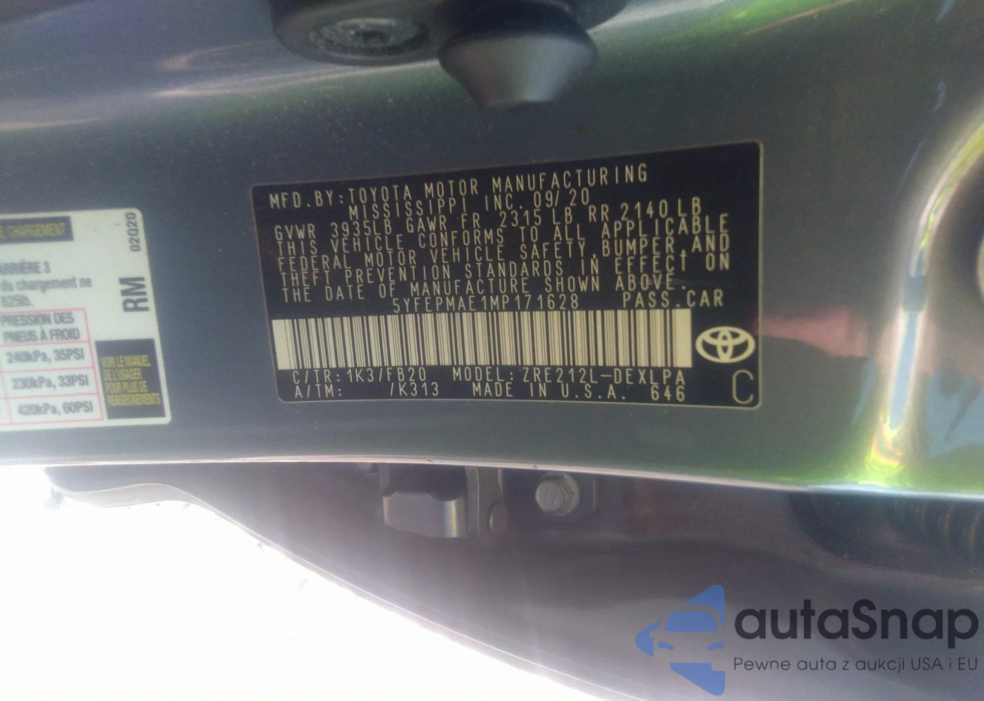 LOT: 43234059 VIN: 5YFEPMAE1MP171628