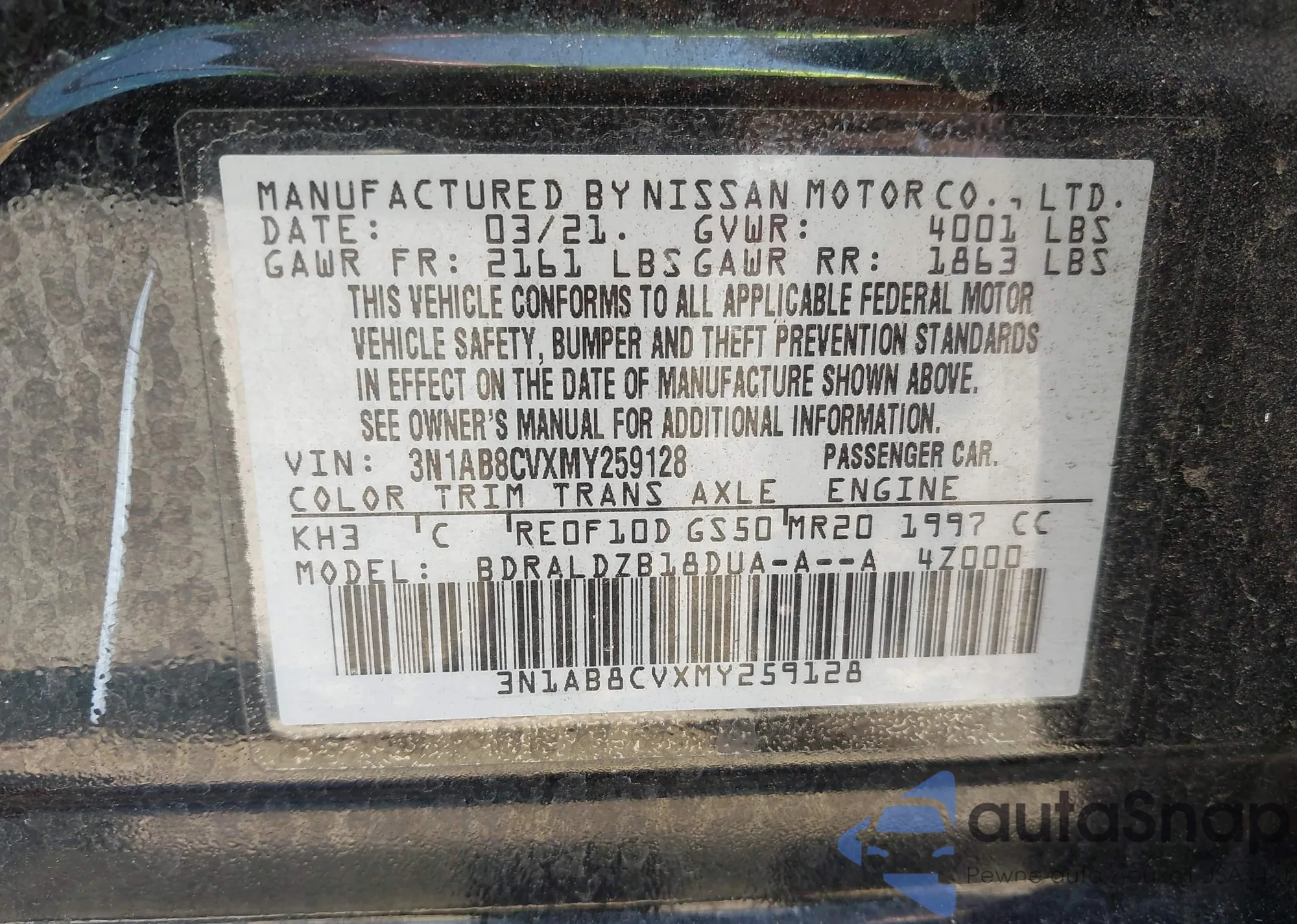 • VIN 3N1AB8CVXMY259128