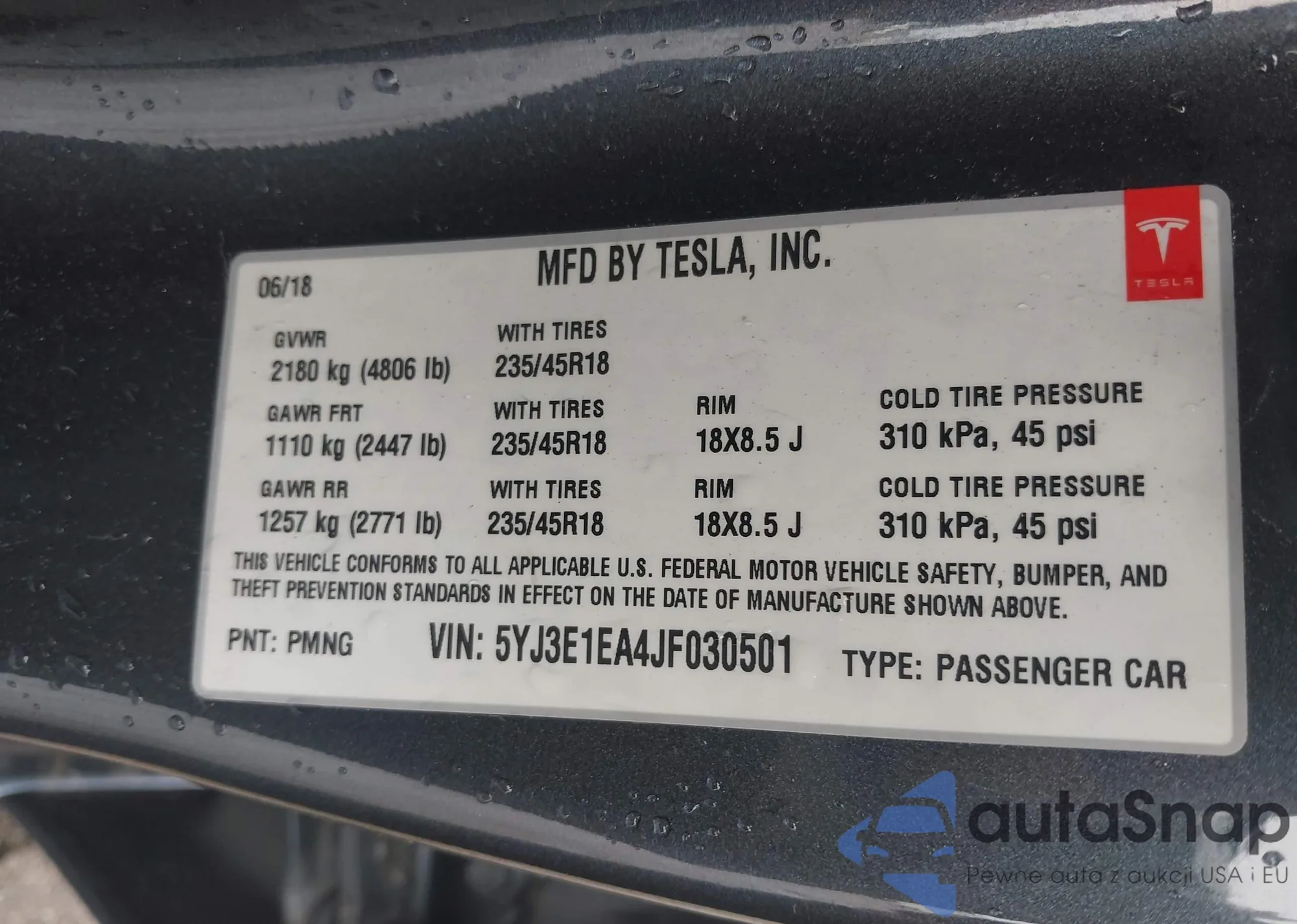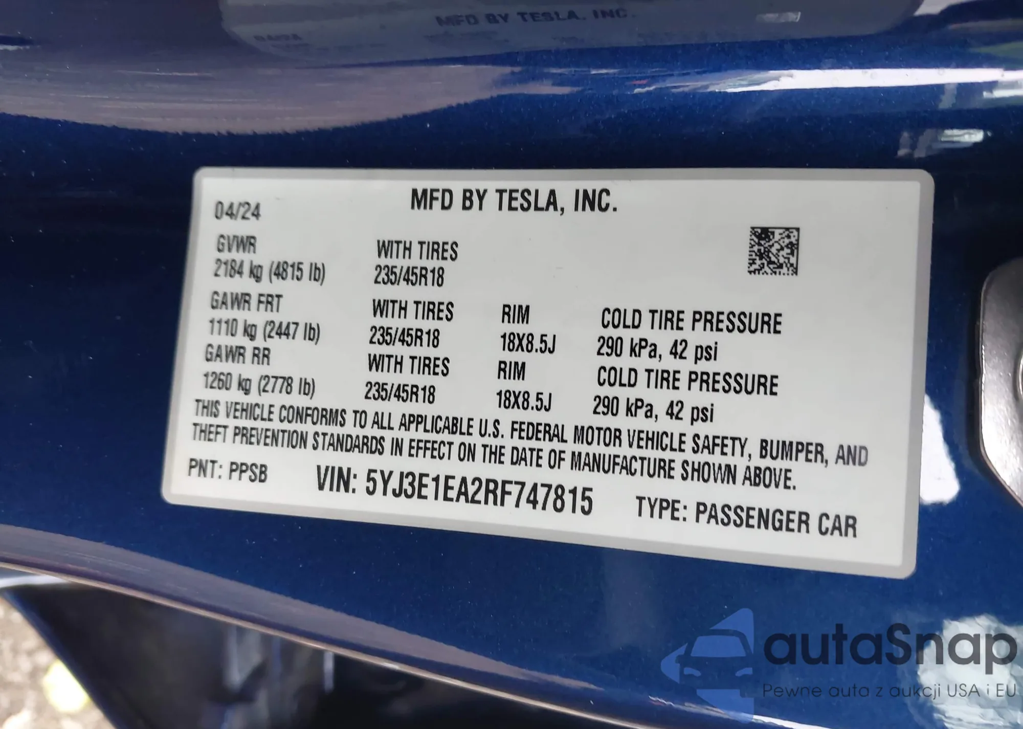 • VIN 5YJ3E1EA2RF747815