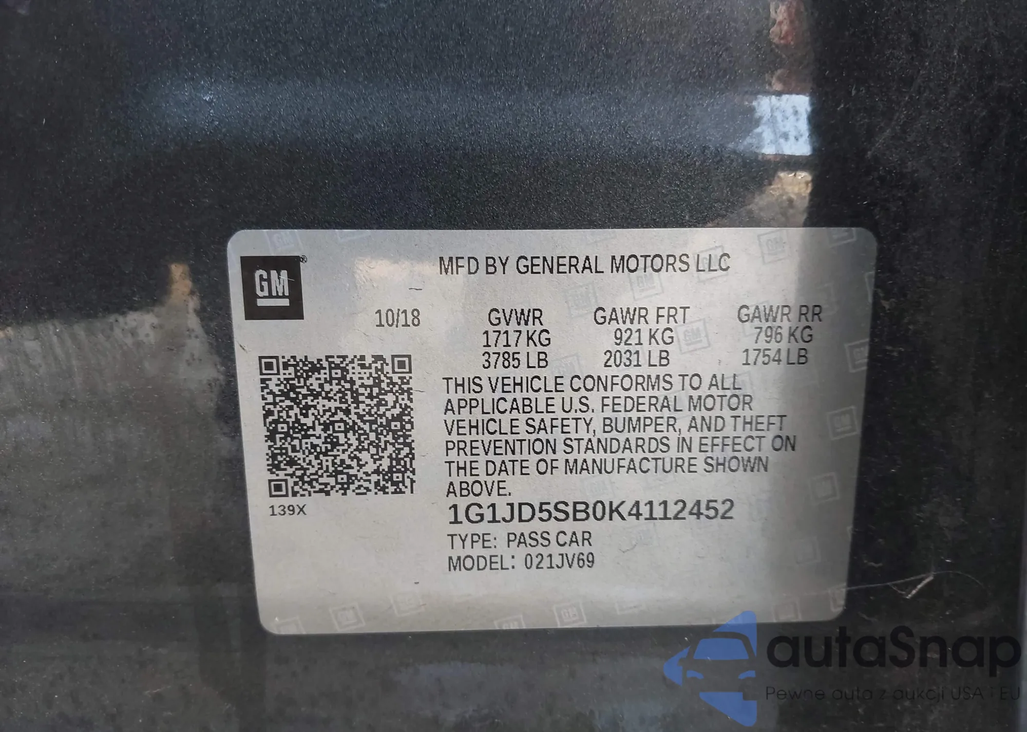 • VIN 1G1JD5SB0K4112452