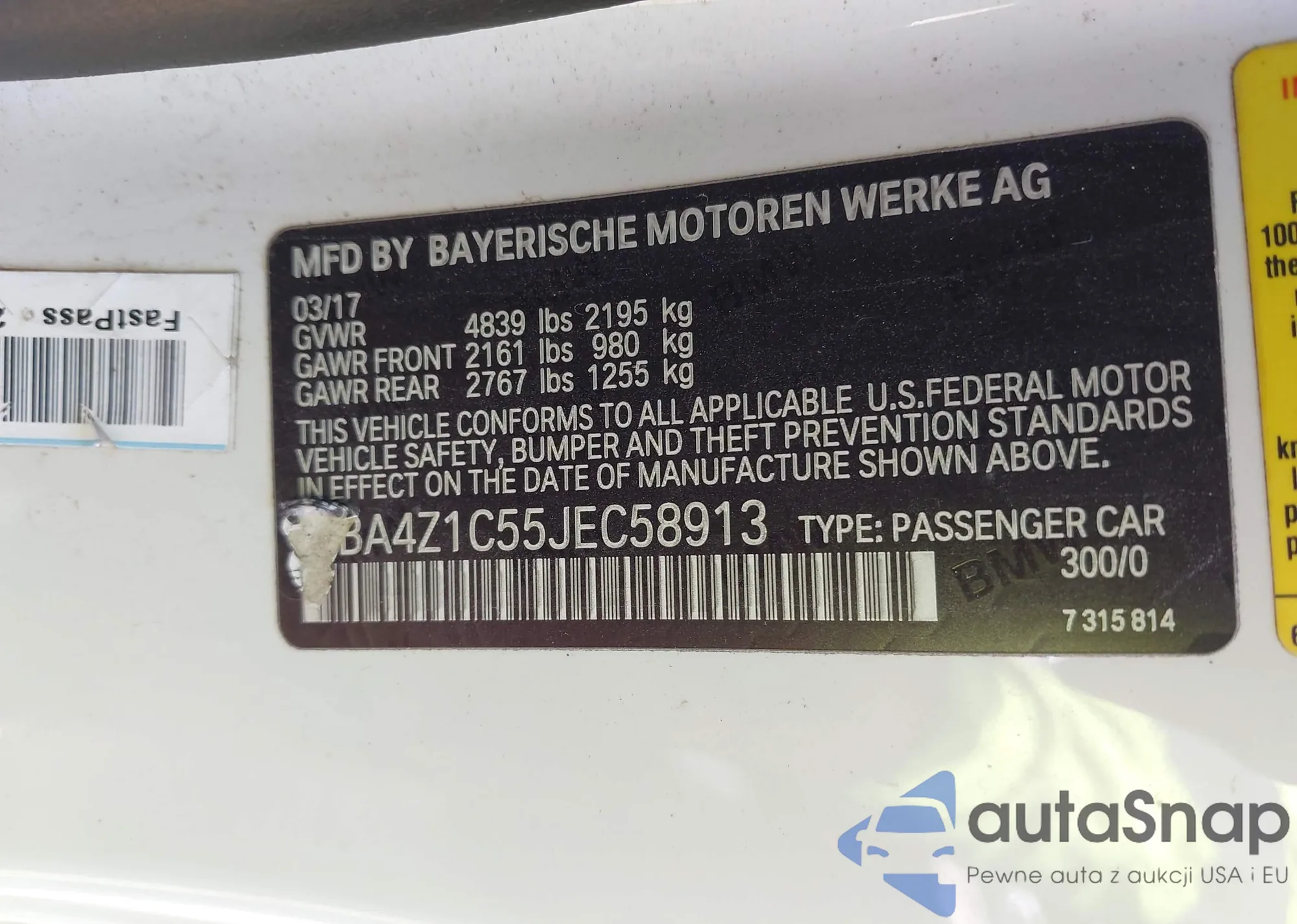 • VIN WBA4Z1C55JEC58913