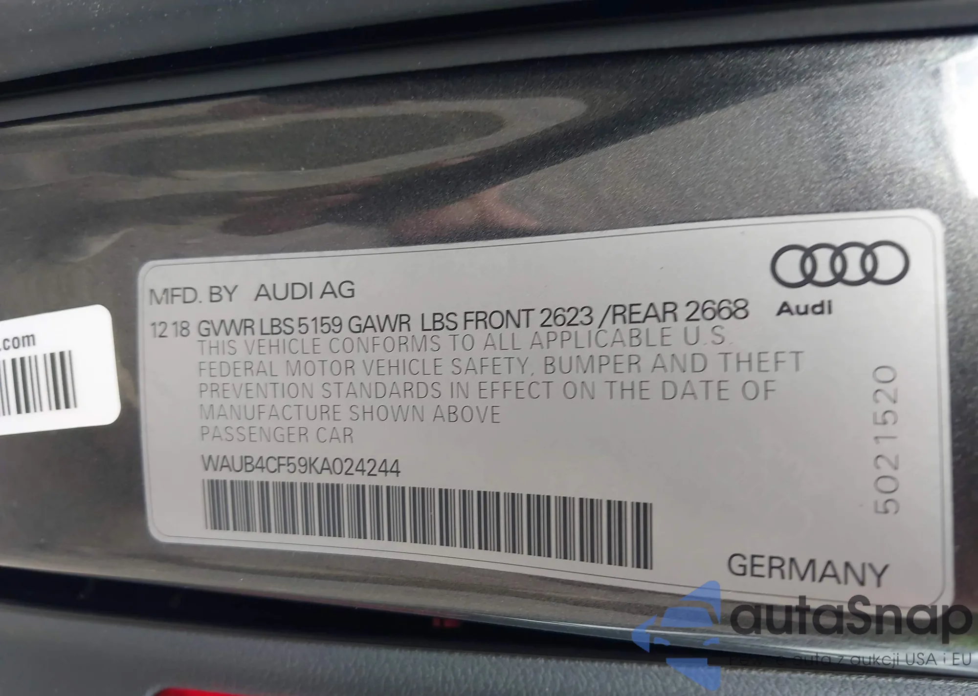 • VIN WAUB4CF59KA024244