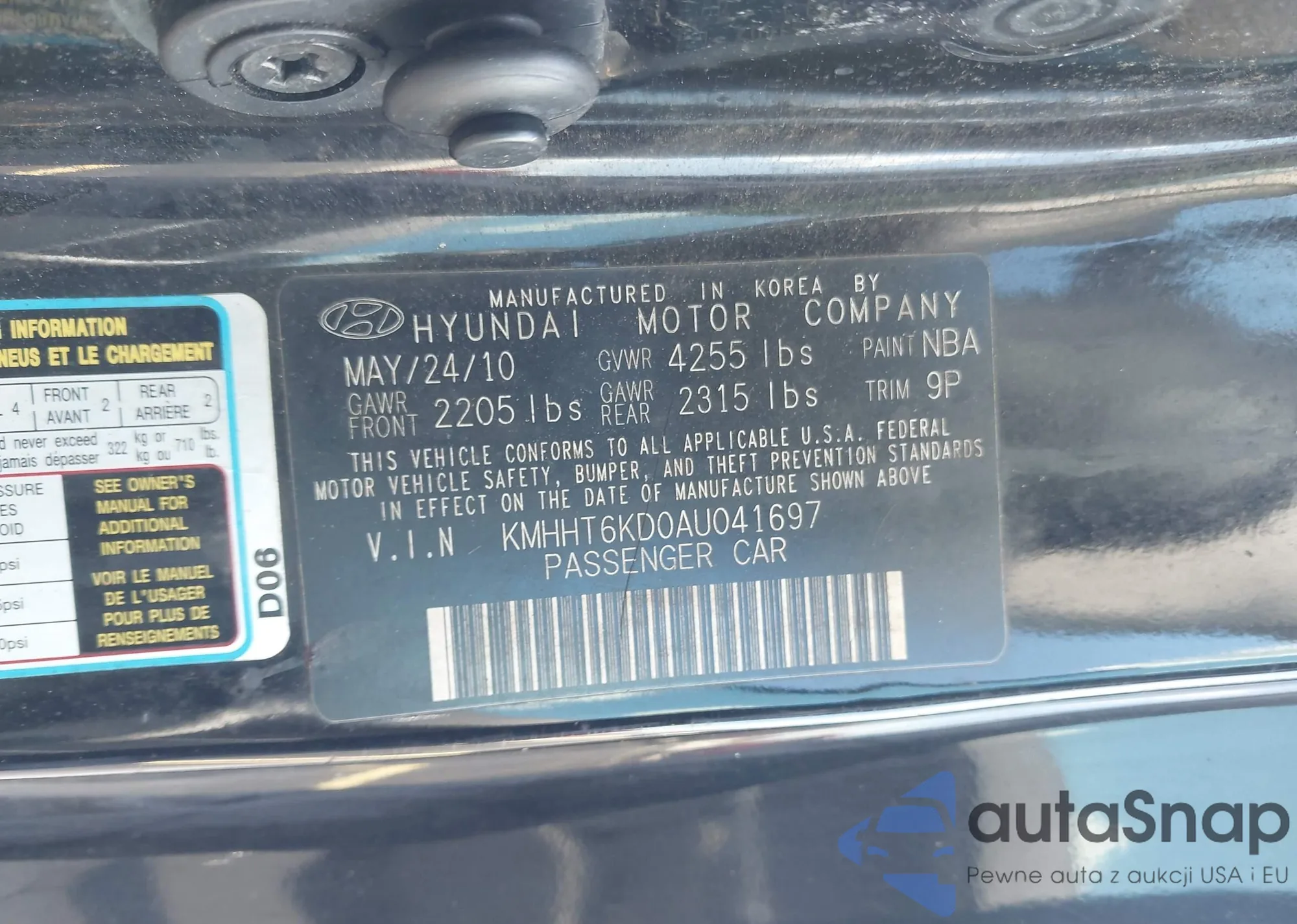 LOT: 43233486 VIN: KMHHT6KD0AU041697