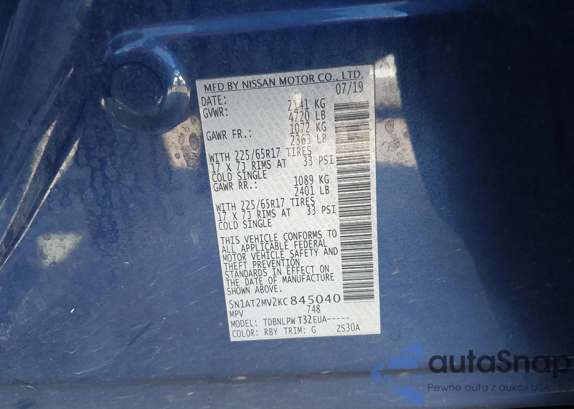 • VIN 5N1AT2MV2KC845040