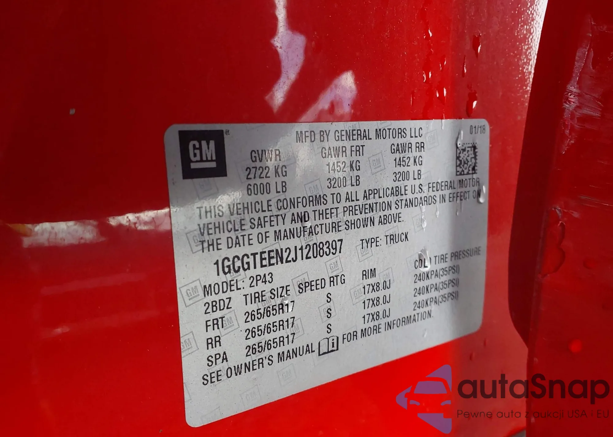 LOT: 43252268 VIN: 1GCGTEEN2J1208397