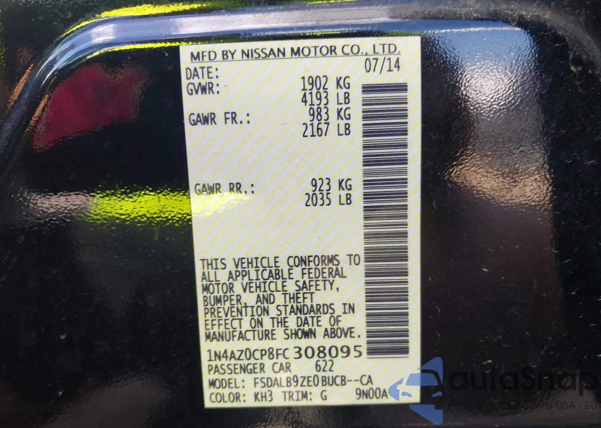 LOT: 43279114 VIN: 1N4AZ0CP8FC308095