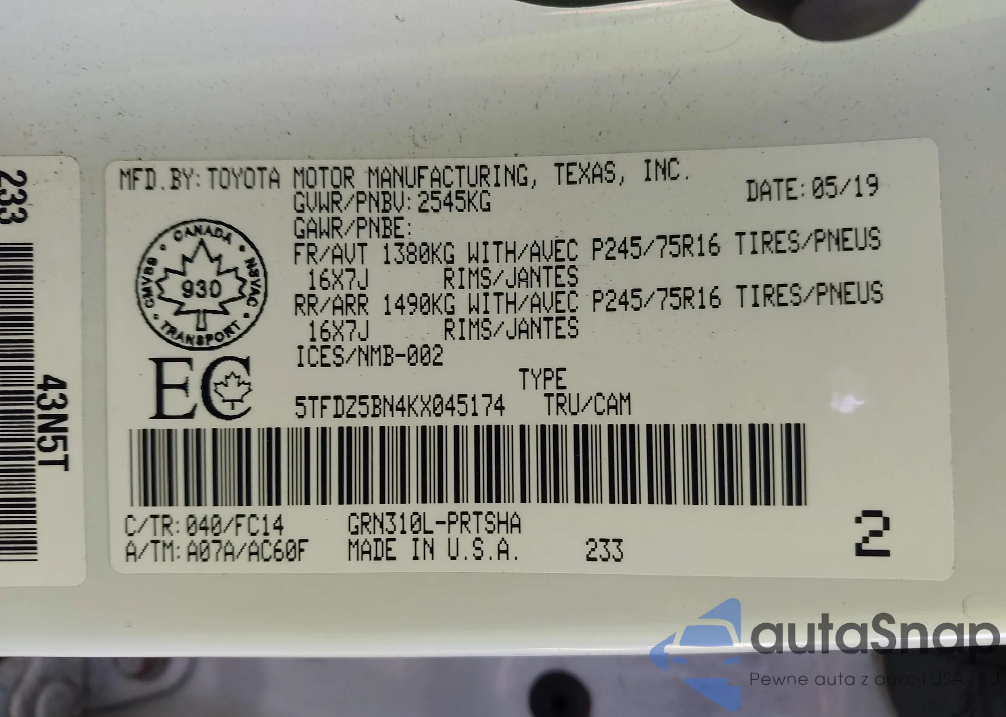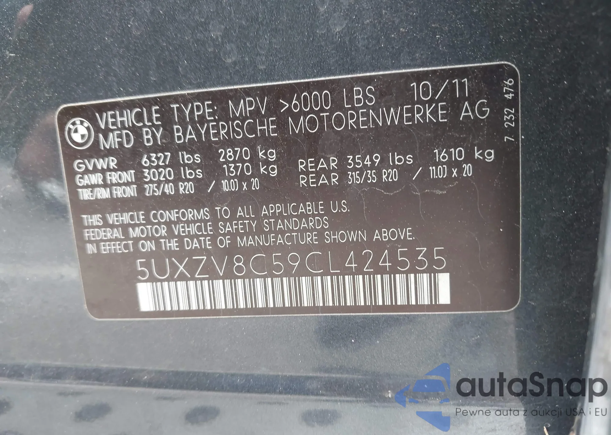 • VIN 5UXZV8C59CL424535