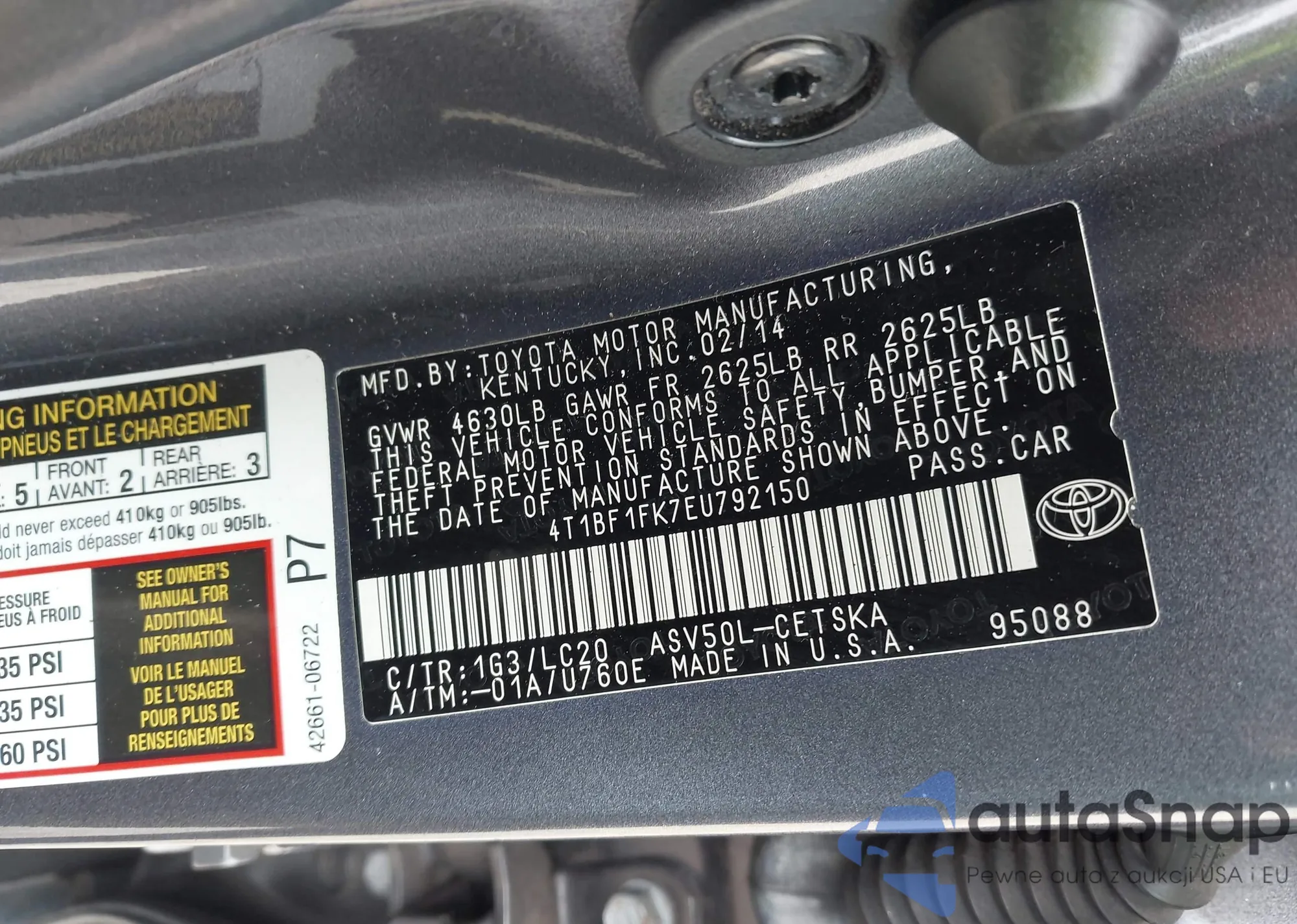 • VIN 4T1BF1FK7EU792150